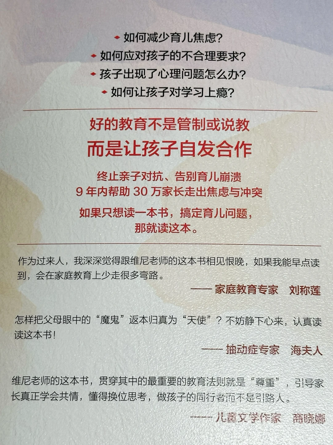 这是每个阶段每个间歇性育儿崩溃的家长都应该阅读的教育指南。它在过去的9年内被30万家长奉为养育孩子的“金科玉律”,掀起了一场终止亲子对抗、告别育儿压抑的养育革命。