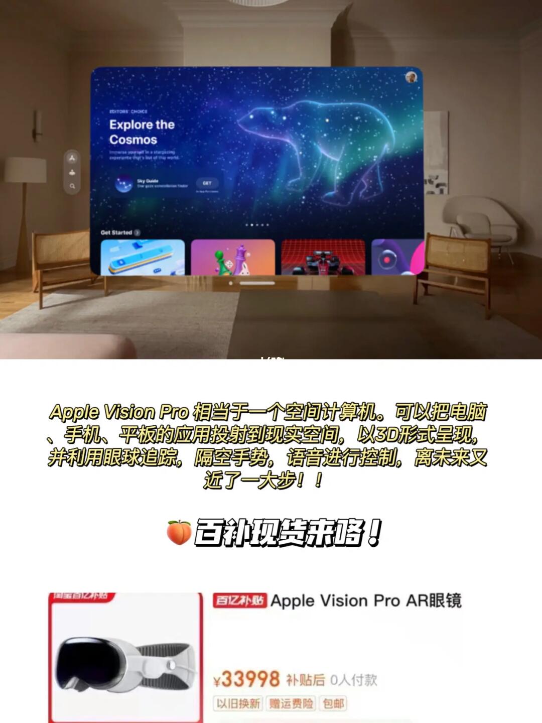具体用途可以看电影,玩沉浸式体感游戏,电脑能处理的一些工作都可以,需要后期更多的app提供支持,可以说是一个划时代的科技产品!!声音算是一大亮点了,很震撼!!现场感很强!!可以说是是Apple最好的空间音频体验!!不戴耳机完全ok!