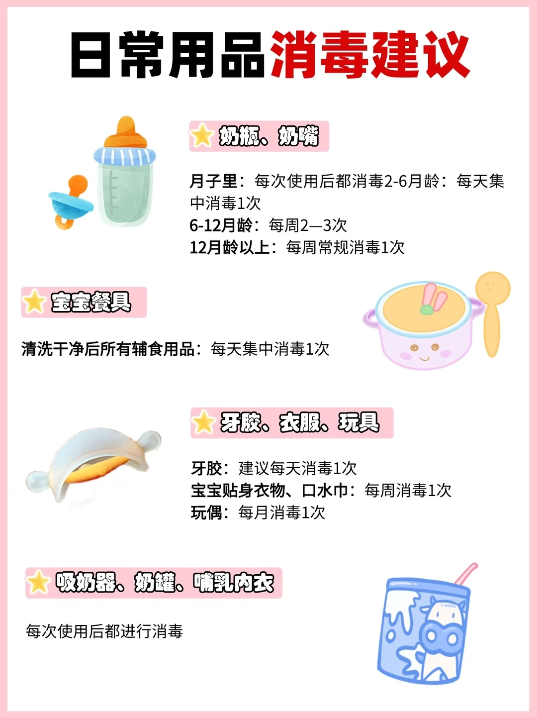月子里:每次使用后都消毒2-6月龄:每天集中消毒1次