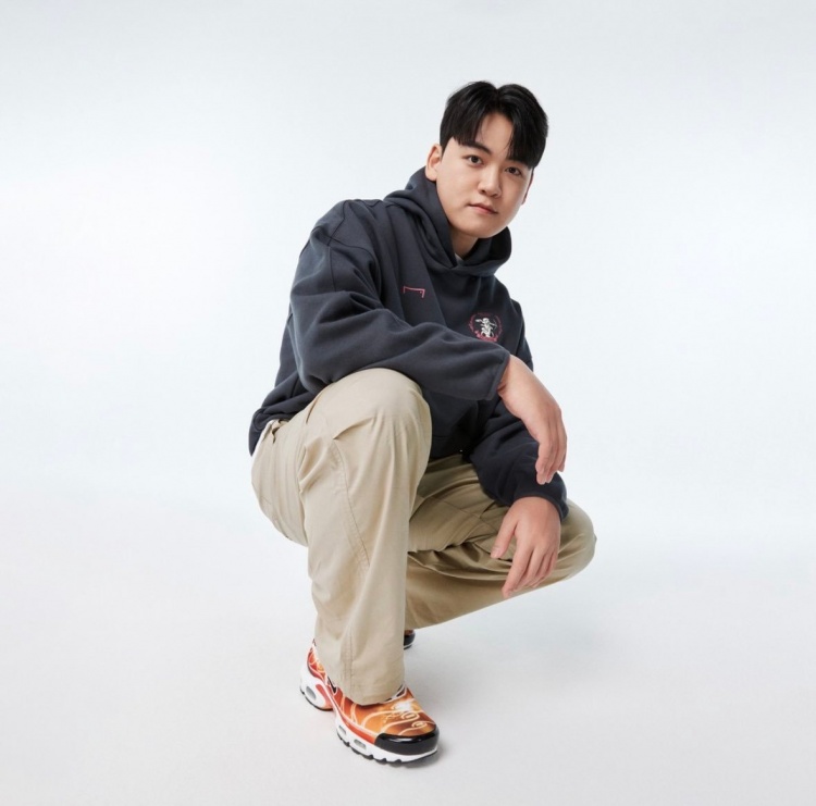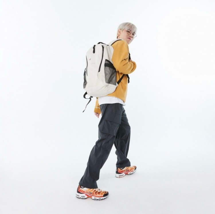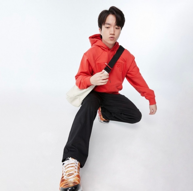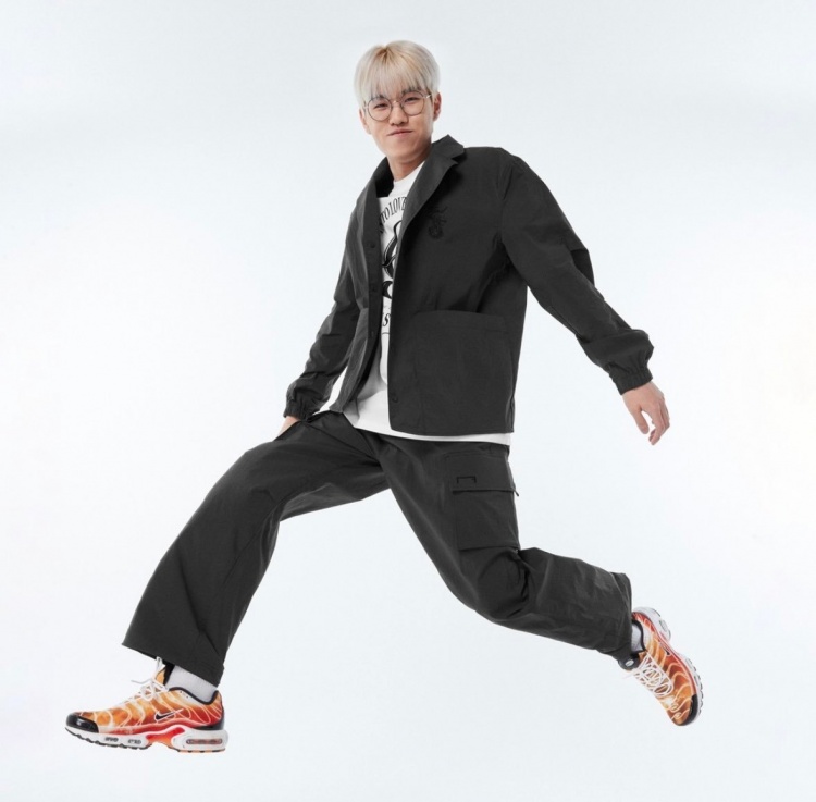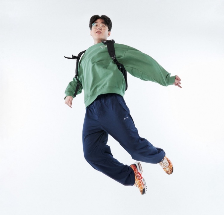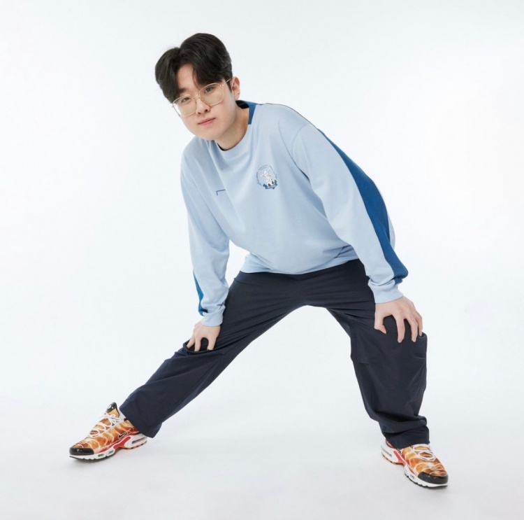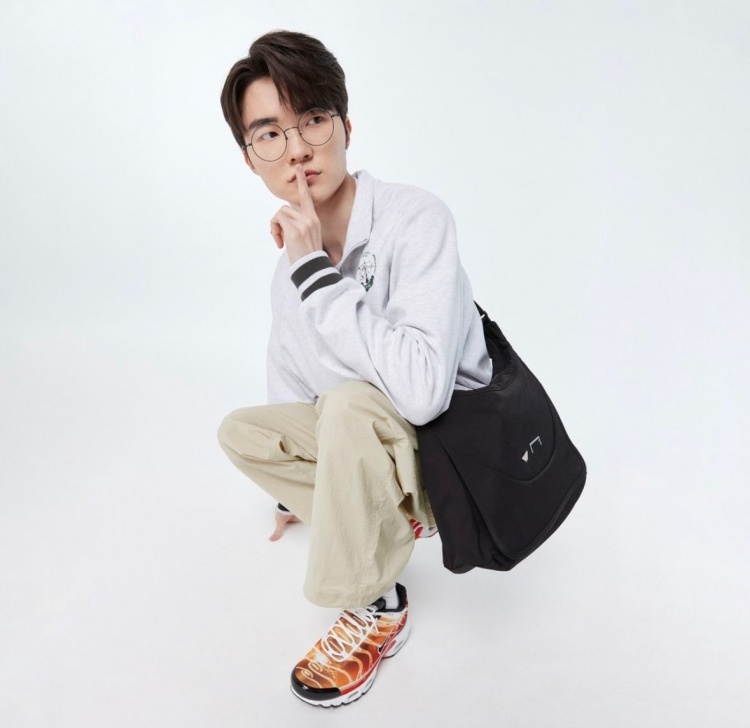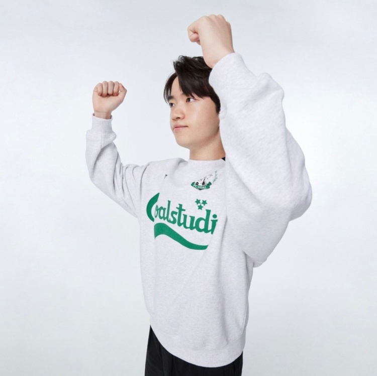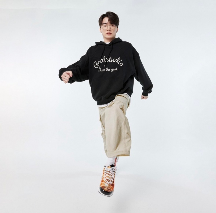 直播吧2月21日讯T1官方分享一组选手们与GoalStudio足球运动街头休闲品牌联名的时尚画报,Faker选手背着黑色斜挎包,比嘘声手势。
