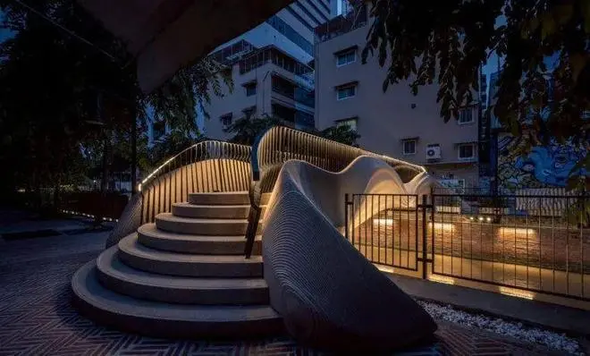 它通过低碳混凝土材料与数字化制造工艺,将可持续的发展理念、精密的现代工艺与深厚的文化遗产,巧妙地编织进城市基础设施的肌理之中。