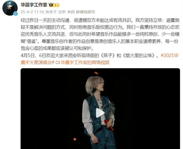 4月2日,华晨宇工作室就黄霄云翻唱《烟火里的尘埃》的版权争议问题,正式发文表明立场。经过昨日一天的主动沟通,华晨宇方与黄霄云方未能达成有效共识,这一结果无疑让关注此事的粉丝们感到遗憾。