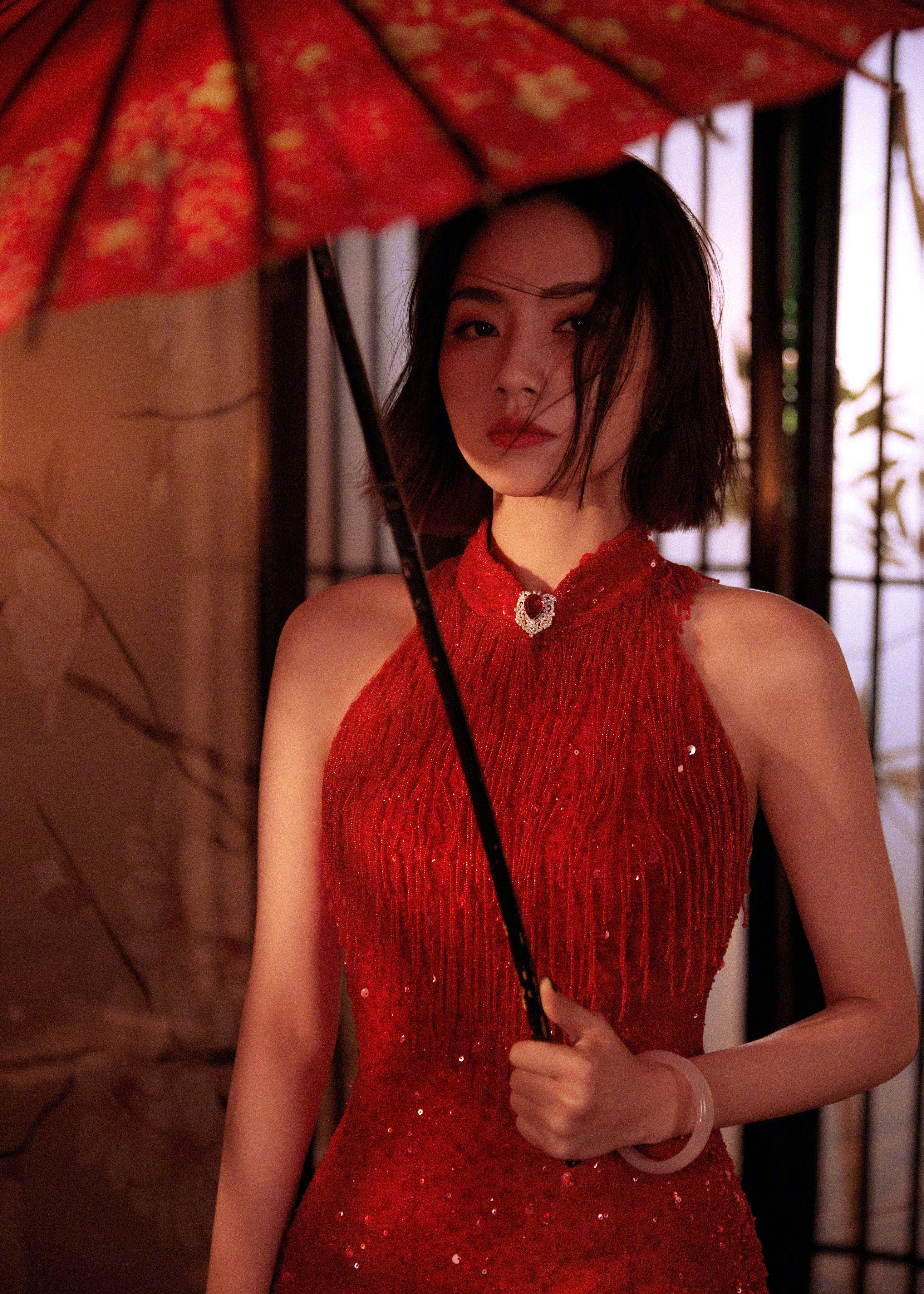刘惜君 身穿红色长裙,宛如一幅画中的仙子,静静地站在窗前,头戴红色饰品,宛如夏日的晚霞,璀璨夺目。她的眼神深邃,仿佛藏着一个不为人知的故事#刘惜君新中式红裙#