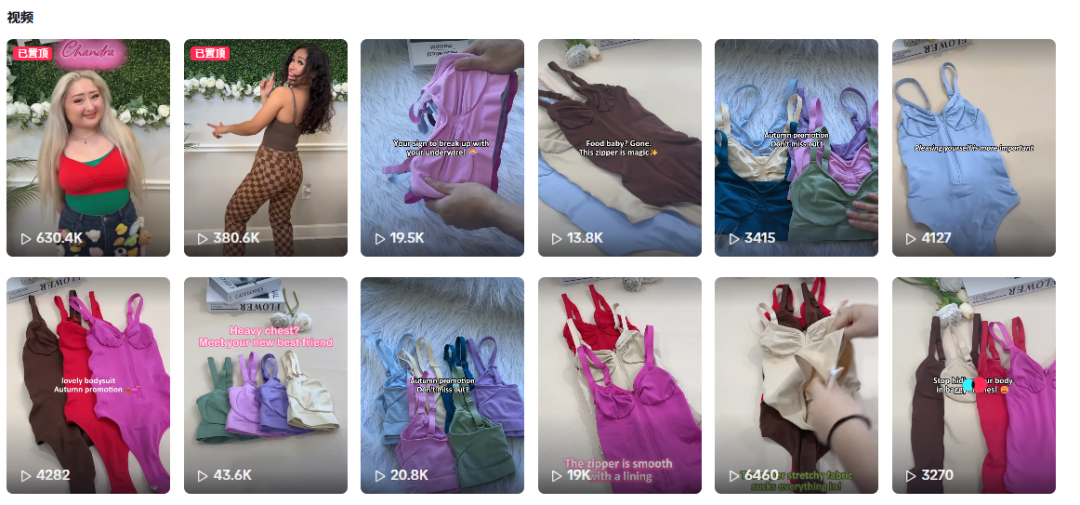 这个塑身衣品牌的视频,大多是直播切片、直接试穿,甚至画面粗糙的“随手拍”。但每条视频都在展示穿上身的即时效果——收腹、提臀、不勒肉。