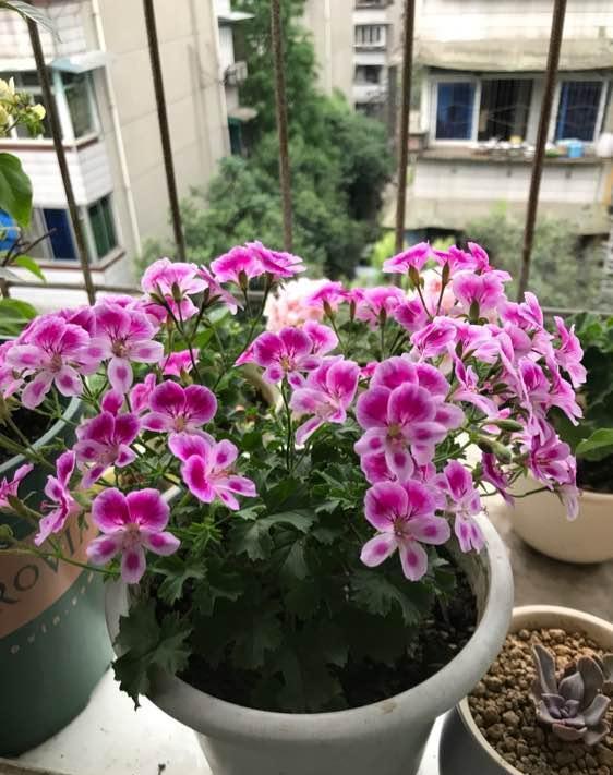 草长莺飞,万物生长, 是适合养花的季节,给大家推荐一款适合 养的花,它就是直立天竺葵的一种,叫做“蝴蝶梅”,是由大花天和糖果天杂交而成,专为园艺阳台观赏而生,直立生长,分枝较多,枝枝见花,一开就爆花。 在西欧国家,很多人都会在窗台上养上几盆天竺葵,用作观赏,天竺葵现在已经属“世界名花”,在世界各地均有栽培,蝴蝶梅的花朵相较普通的天竺葵来说,花量稍大,但是它单瓣花,胜在花型独特,上边两瓣下边三瓣,状如蝴蝶,灵动又可爱,现在养一盆,放在窗台上,就是一个小花园,有很高的观赏价值。