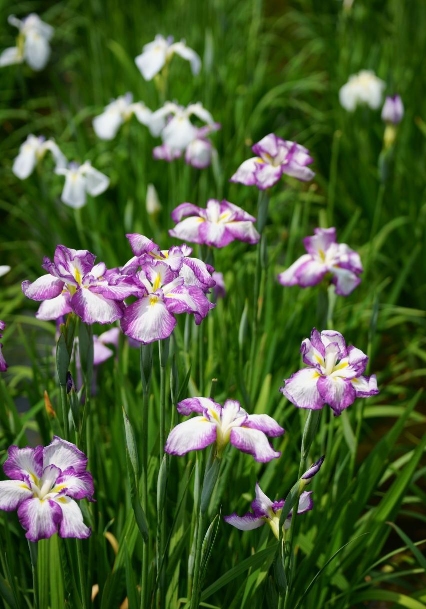 菖蒲—— 菖蒲先百草于寒冬刚尽时觉醒,因而得名。菖蒲“不假日色,不资寸土”、“耐苦寒,安淡泊”,生野外则生机盎然,富有而滋润,着厅堂则亭亭玉立,飘逸而俊秀,自古以来就深得人们的喜爱。 古人莳养菖蒲的方法更为绝妙:“以砂栽之,至春剪洗,愈剪愈细,甚者根长二三分,叶长寸许。”菖蒲是代表 气的花, 有家家户户门上插菖蒲、艾叶之俗,可以辟邪驱痛。利用它直线的叶片,表现出初夏的清凉感觉。而菖蒲在德国的花语是“婚姻完美”,所以庭院里栽种几棵菖蒲,是不错的选择。 菖蒲的种类众多,其丰富中的品种,较高的观赏价值,常被人们用于园林绿化的水域景观,只要水不干涸,它不能会枯萎,菖蒲叶丛翠绿,端庄秀丽,具有香气,适宜水景岸边及水体绿化,也可盆栽观赏或作布景用。叶、花序还可以作插花材料。园林上丛植于湖,塘岸边,或点缀于庭园水景和临水假山一隅,有良好的观赏价值。