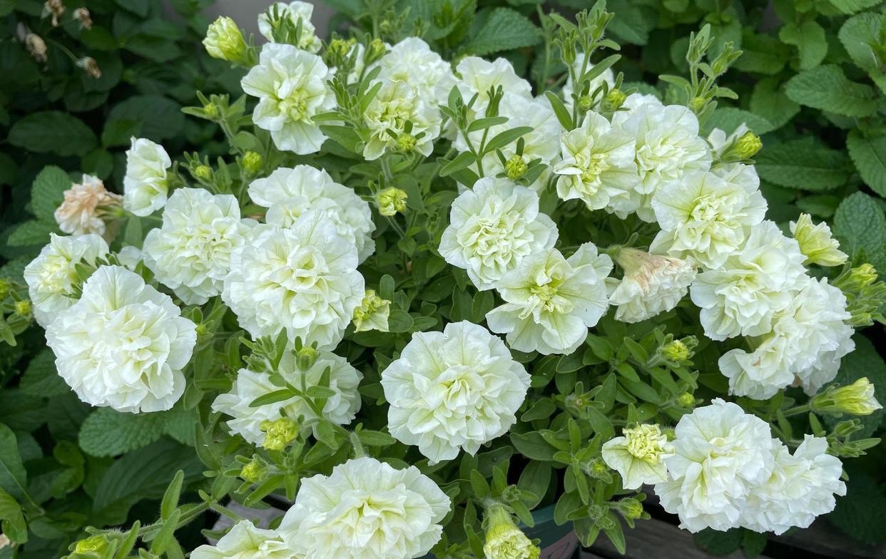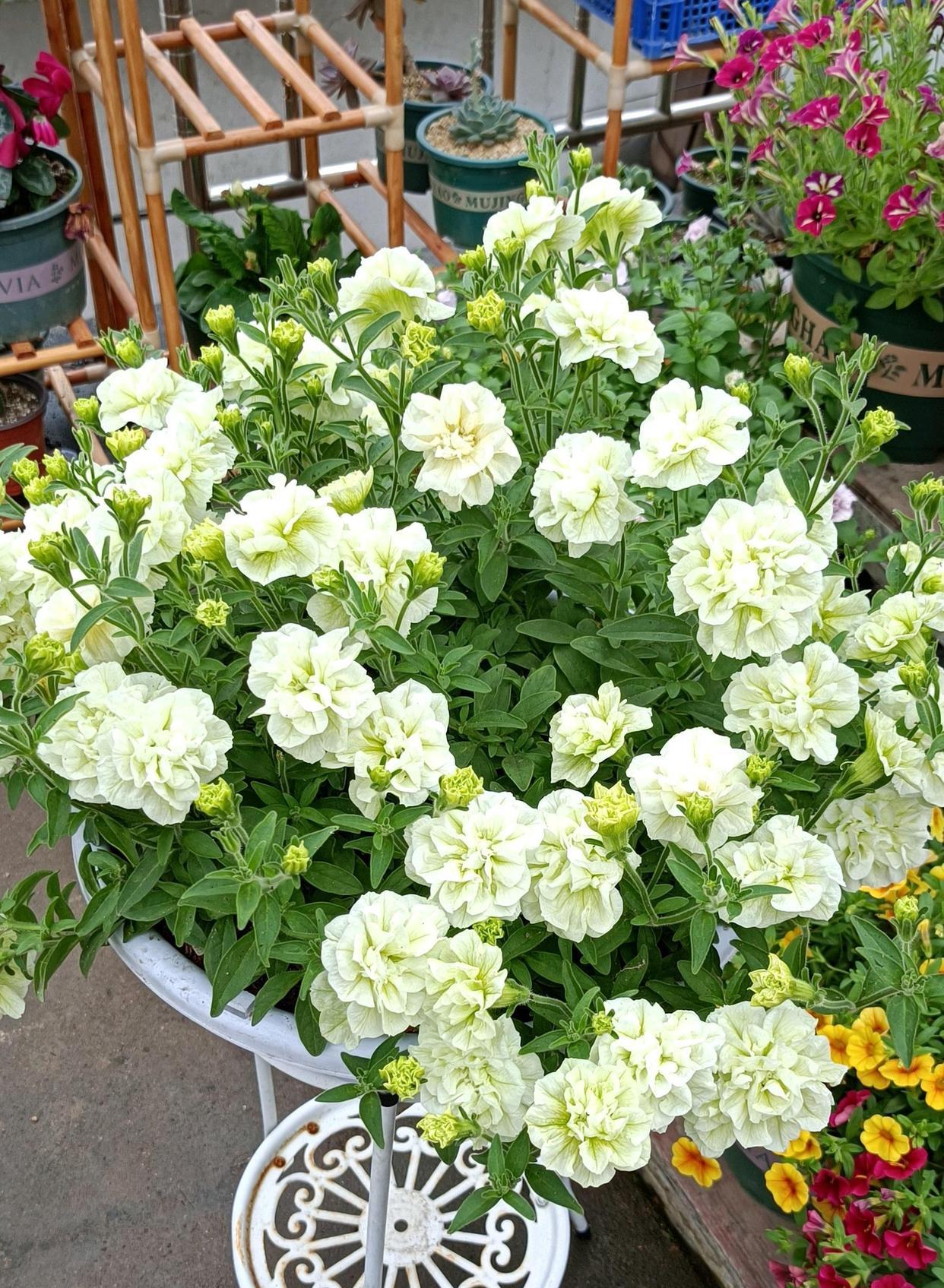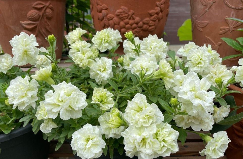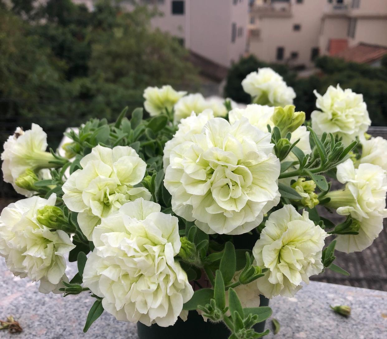 春回大地,万物复苏,现在是一年里最适合养花的季节。给大家推荐一款这几年很火的“网红”盆栽花——重瓣矮牵牛“伊丽莎白”,花朵美得像牡丹花一样,冰清玉洁的花色,还有淡淡的花香,观赏价值极高,花期能从 一直开到深秋,多年生草本,生长速度快,耐修剪,日常打理工作只要多晒太阳,土干了浇水即可,夏季遮阴, 低于5度入室,是不可多得的阳台盆栽佳物,深受国内外养花爱好者喜欢,家里阳台还有位置的朋友不要错过。