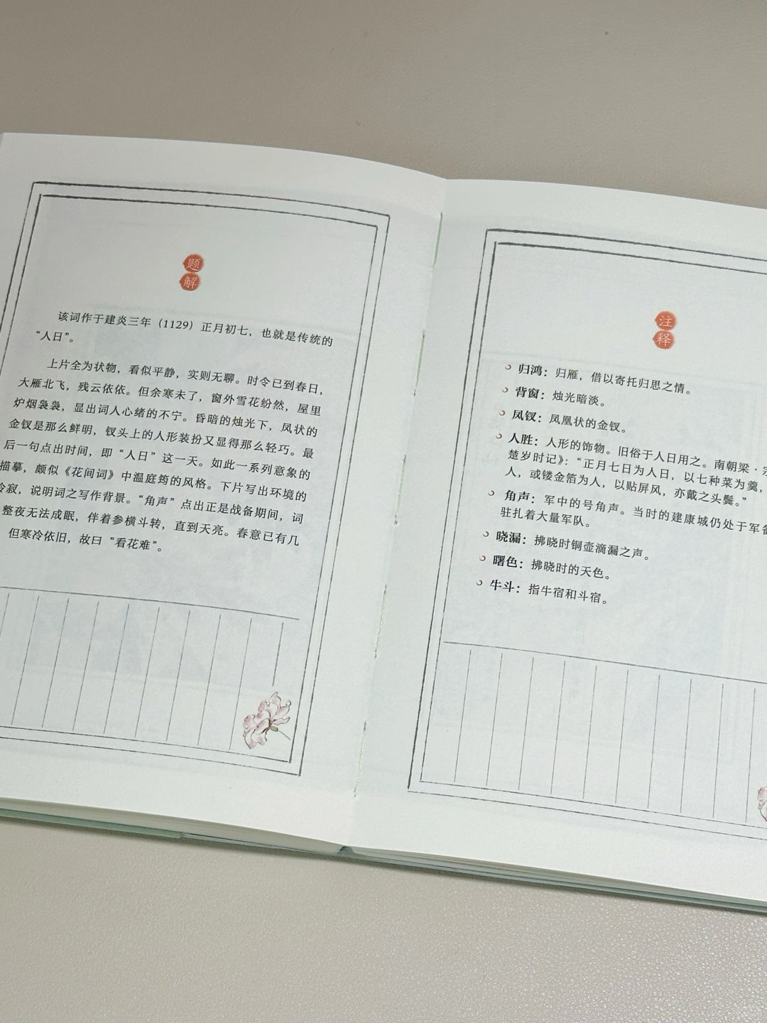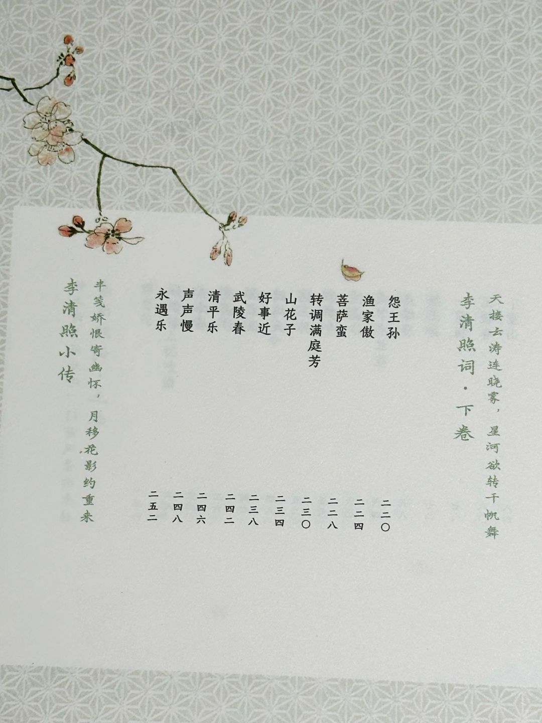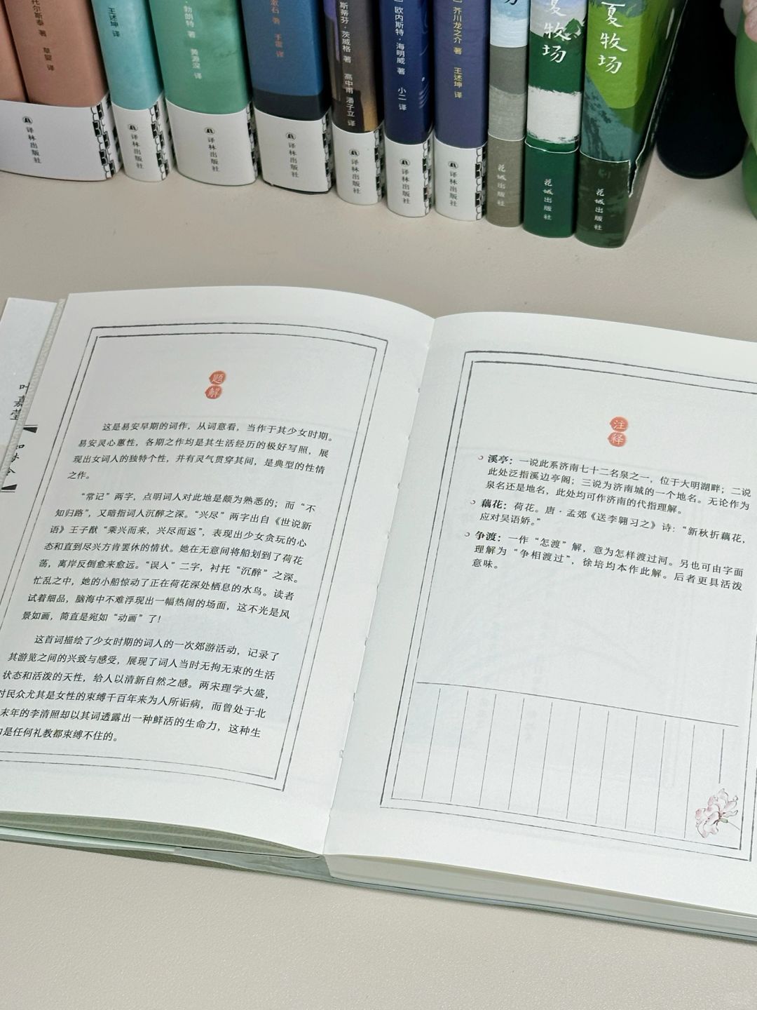 🔖本书以王鹏运四印斋所刻本《漱玉词》为底本,以汲古阁所刻《诗词杂俎》本为参照,按写作时间线排列,收录李清照全部词作49首,除题解、注释、人物小传外,另增有叶嘉莹先生近两万字导读,娓娓道来李清照及女性词作背后的魅力,堪称“人人皆能读懂的、全面系统的李清照词读本”。