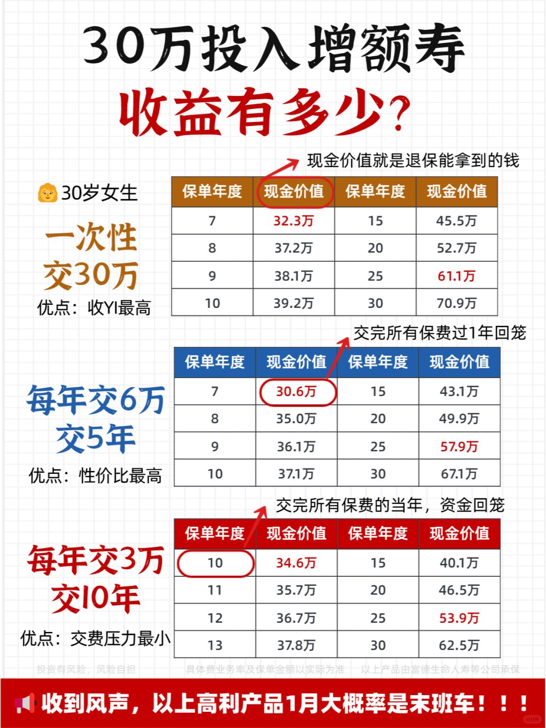 30岁女生,每年交6万,交5年