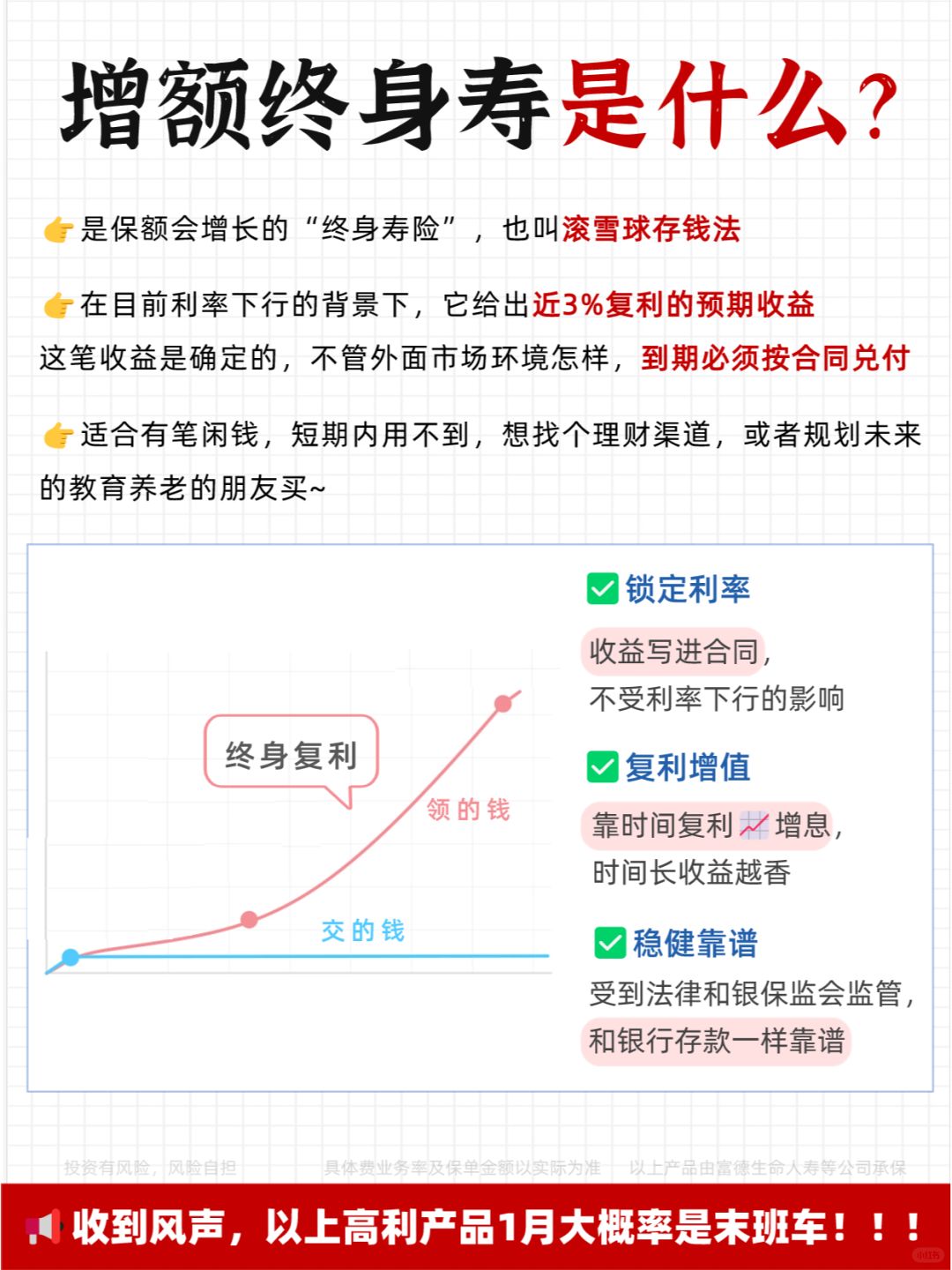✅本金和收益稳定。现金价值按照固定利率增值,复利3.0%写进合同