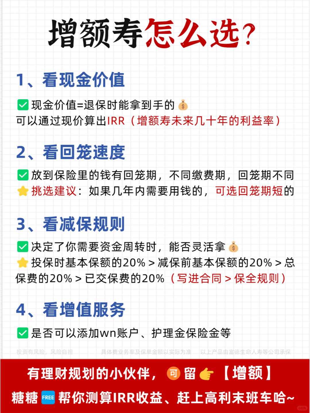 🌟看到这么高的收Y,可能很多朋友就心动了,但先别急,一定要先搞懂增额寿是什么?为什么选择增额寿?如何挑选增额寿?(这几个问题的答案我都整理到图3-图6了哈)