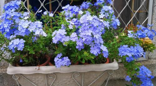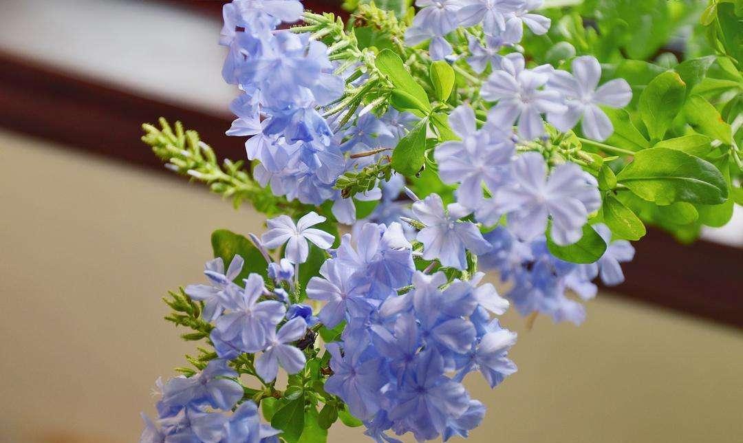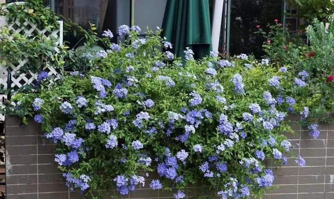 养棵蓝雪花,5- 10月持续开花小半年 蓝雪花属于白花丹科、蓝雪花属多年生草本植物,因为枝条具有一定的柔韧性和蔓性,非常适宜南向阳台以及窗台养护,当枝条自然悬垂、花朵密集盛开时非常优雅,同时它也适宜庭院栽培,用于打造花墙和拱门,是非常小清新的网红植物! 蓝雪花喜阳光充足、通风良好的环境,也可耐半阴,耐热性较好,但是不耐干旱,尤其生长期和花期需要充足的水分。同时它也不耐寒, 环境温度不宜低于5℃。 它的自然花期以5- 10月为主,一旦开花,可持续绽放小半年,施肥以花卉型水溶肥或缓释肥为主,薄肥勤施即可。 蓝雪花很耐修剪,具有新枝开花的特性,繁殖以扦插为主,一般在春秋两季进行,日常修剪的枝条就可以用来扦插。蓝雪花也可通过修剪以及牵引造型,使枝干逐渐木质化、枝条密集生长于顶端,形成棒棒糖老桩后观赏性更好。 蓝雪花花期不宜长时间淋雨,否则花朵容易耷拉,并且叶片上会粘染灰白色的花粉,这属于正常现象,应与白粉病区分开来。