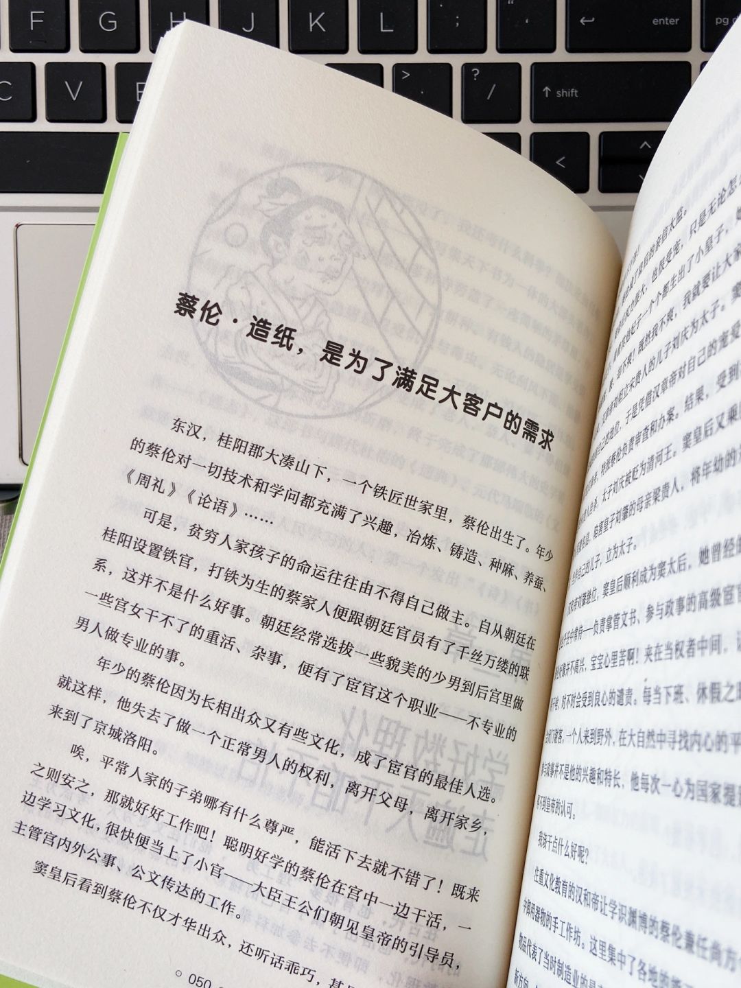 ◾️在书中,可以看到出生在铁匠世家的“理工男”蔡伦,虽然家境贫穷,又命运不济成了宦.官,但他凭借自己的努力在宫中钻研新技术,造纸有功,成了邓皇后的私人顾问。