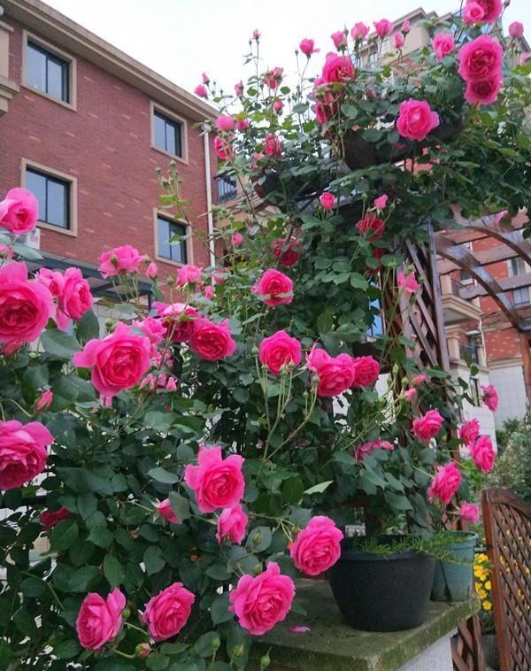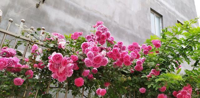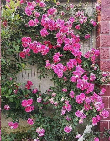 春季是适合养花的时候,特别是家有小院子,若是想养上一些花,现在就是最好的时候,今天我收一位花友留言,问院子现在适合养啥花? 能养在子里的花,我给她推荐的是一款藤本月季,它的名字叫做“大游行”,是一款长得最快,花期最长,花量最大的月季花,最适合种在院子里,可以打造花墙、花篱笆、花园打拱门,一般2-3年就能长满一大片,开花满头,特别的漂亮。 看看是不是很漂亮,大游行是一款特别棒的大型藤本月季花,地栽的月季花,能长得很高大,它的叶片能长到长到215-365厘米,宽度可以达到245厘米,它的花朵很大,一朵花的直径可以达到14厘米左右,花瓣可以达到33瓣左右,颜色是娇艳的深粉红色,香气温和,色泽艳丽。 大游行自从面世以来,距今有60多年,在这60多年里,一直备受人们的喜爱,可以说是养护最多的月季花,特别是庭院、公园里,用来打造花墙、花篱笆、花园拱门等等各种浪漫花境,一棵大游行的小苗,一般2-3年就能长出一大片。