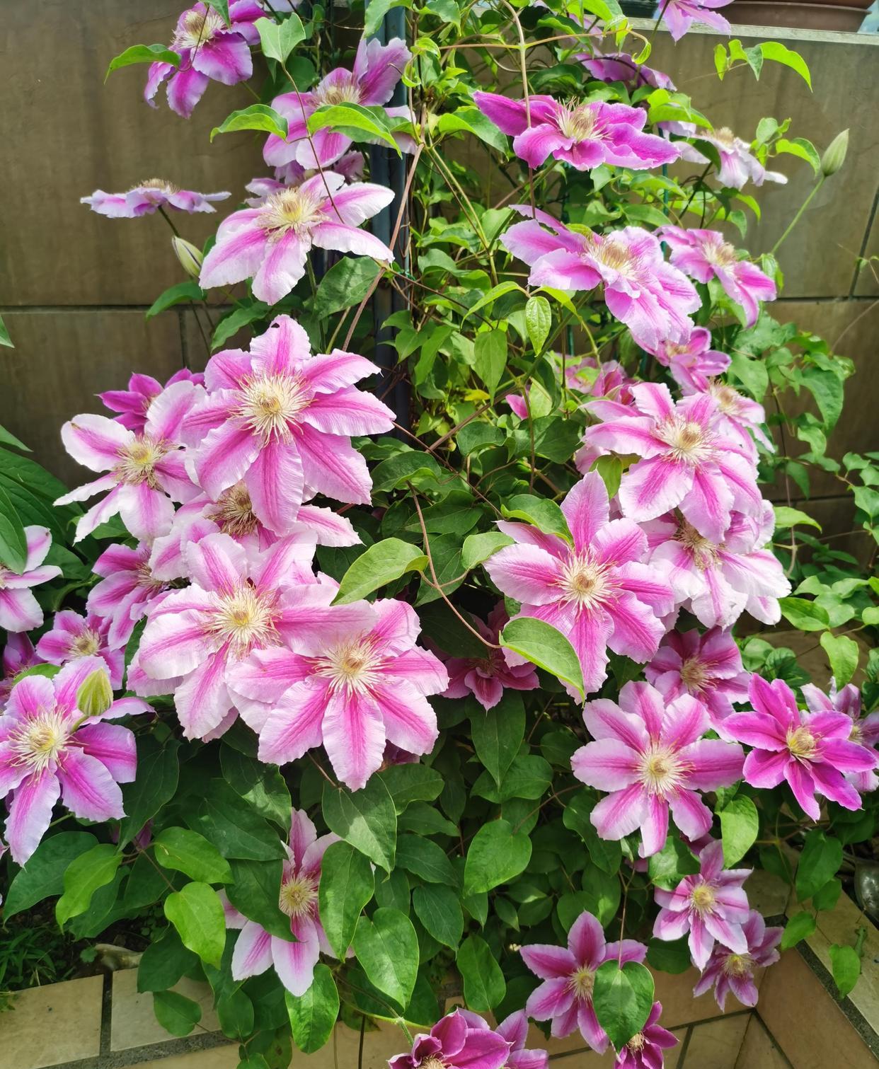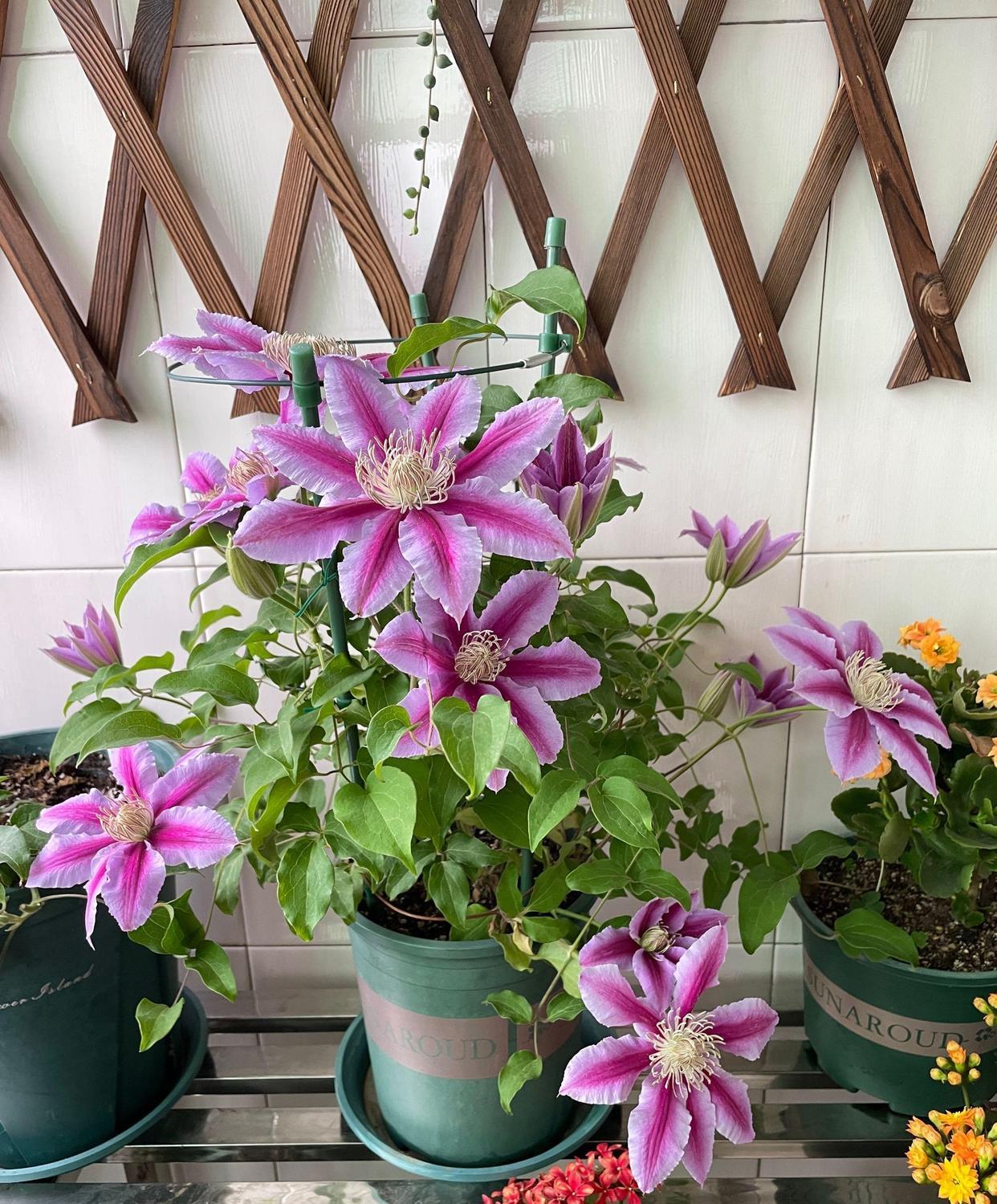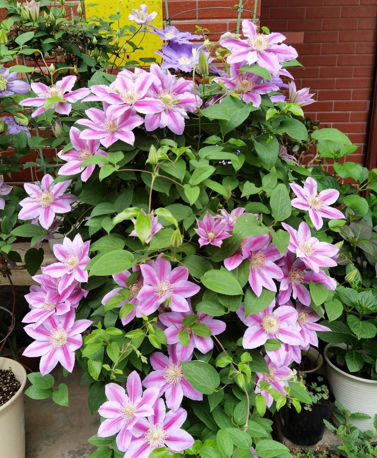 春季是铁线莲的“主场”,给大家推荐一款适合新手养的品种——经典,也叫“鲁佩尔博士”,因为育种家对这个品种信心十足,索性用自己名字命名了,是一款早花大花铁,每年 开始陆续开花,第一波盛花期是4~ 10月 ,夏季零星开,到了 8- 爆花第二波,单花花期可以开个20天。花大色美,花径可达18厘米,粉色的花瓣,中间有一道明显的紫红色条纹,在阳光底下艳丽十足,观赏性极强,花量也多。生性皮实,比较好养的品种,南方北方都适宜, 能耐-10度的低温,盆栽、地栽都可以,是铁线莲爱好者们最爱养的品种之一,相当于月季里的“果汁阳台”,很适合新手花友“入坑”。