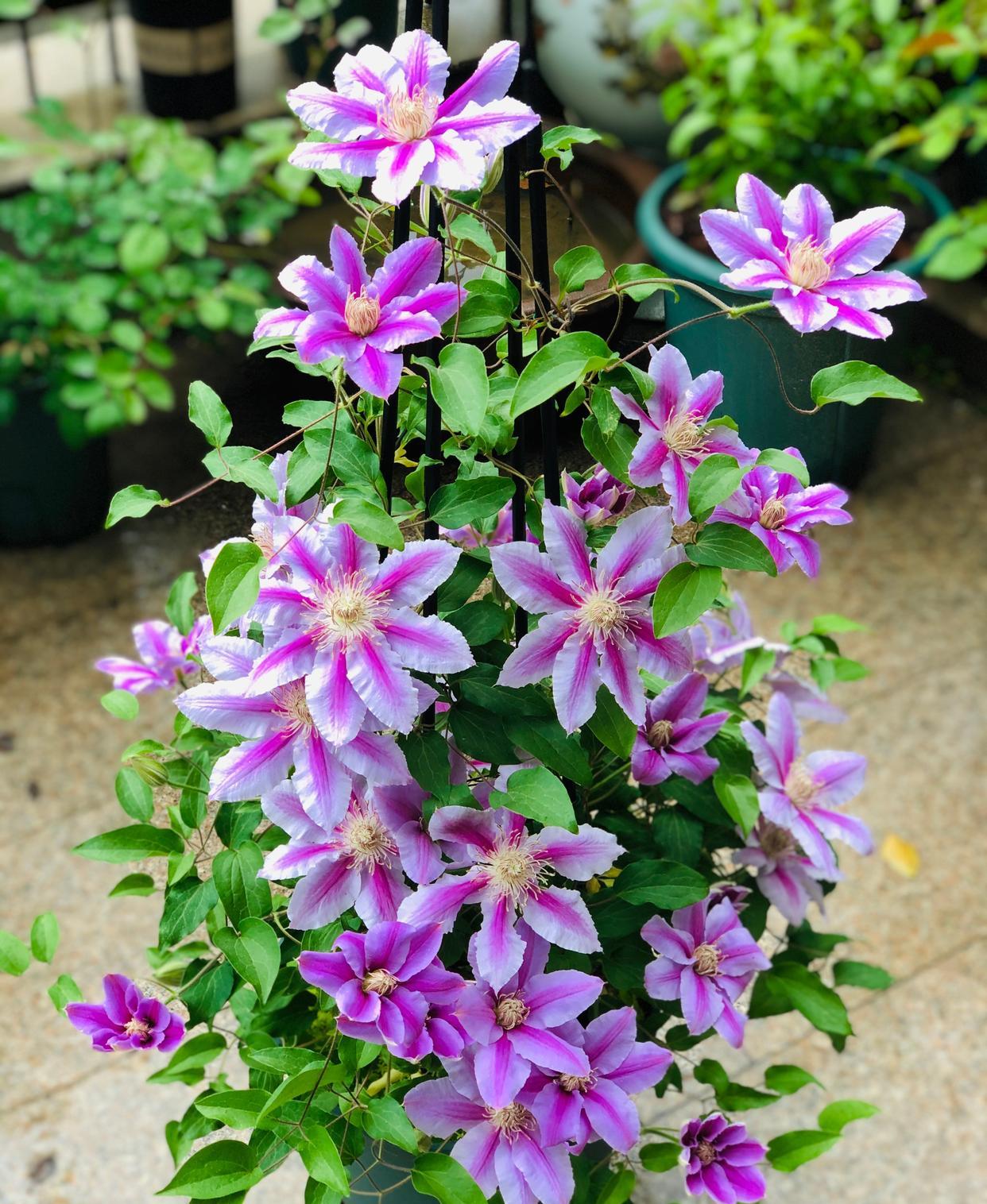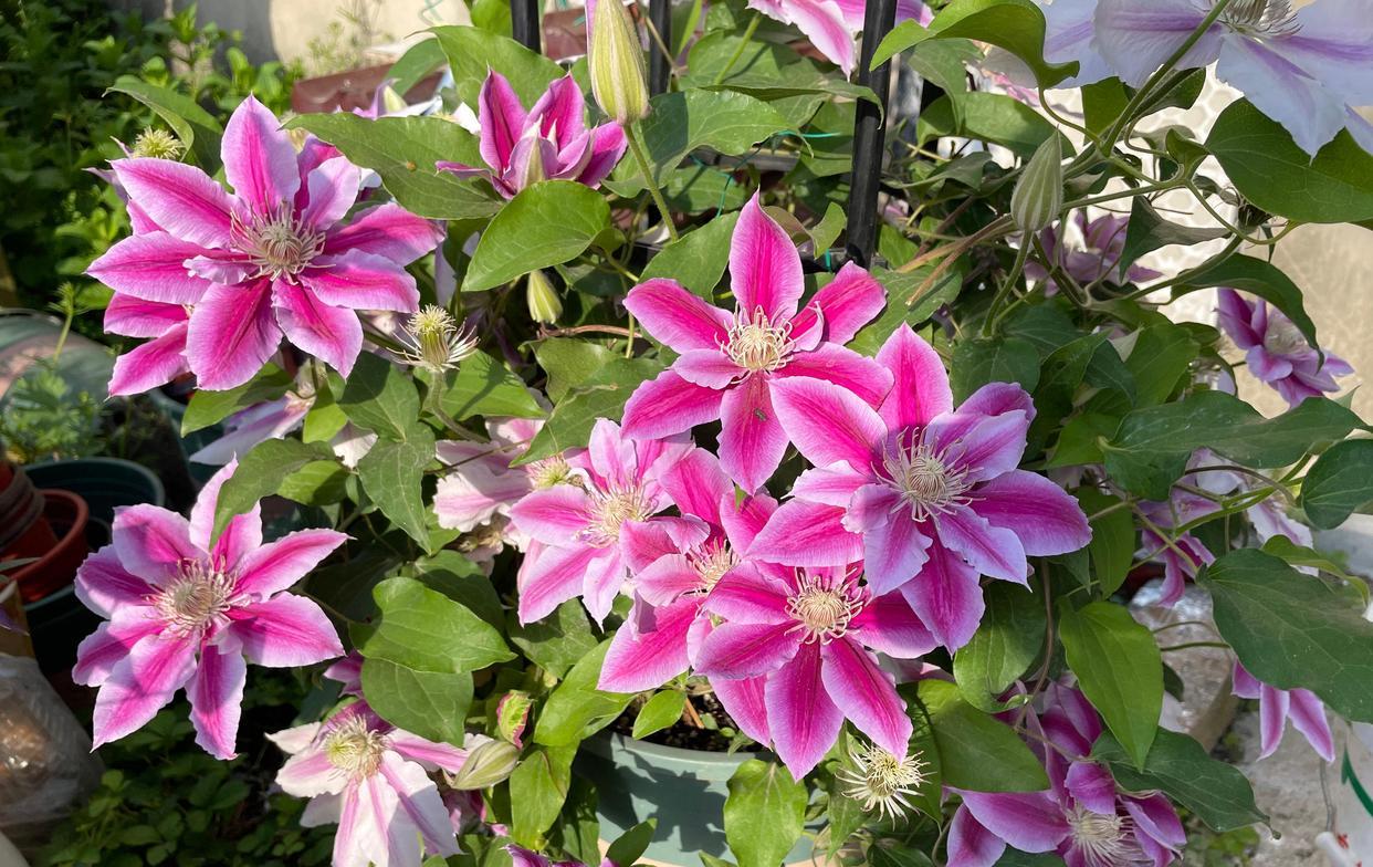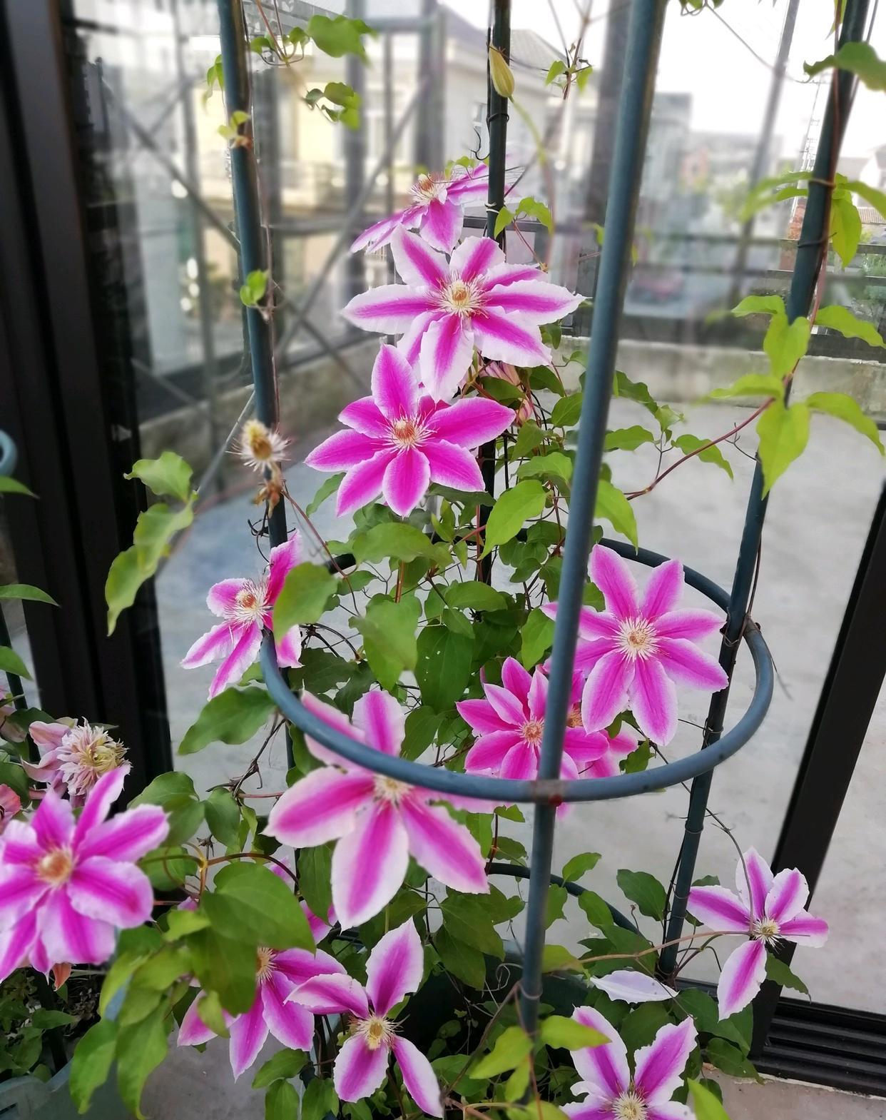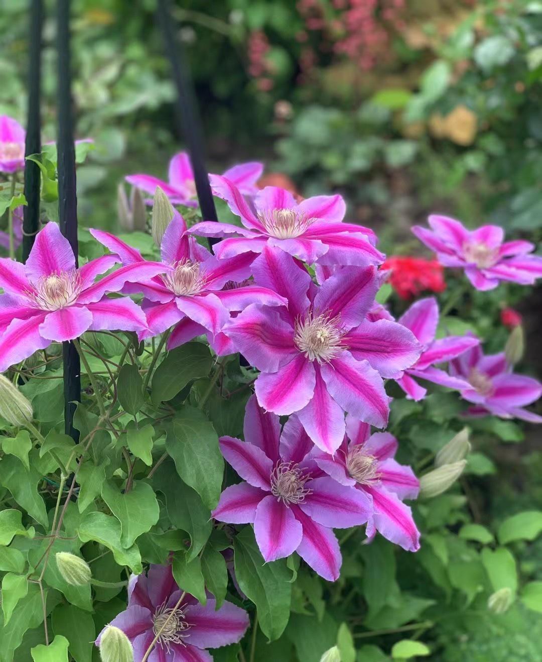 春季是铁线莲的“主场”,给大家推荐一款适合新手养的品种——经典,也叫“鲁佩尔博士”,因为育种家对这个品种信心十足,索性用自己名字命名了,是一款早花大花铁,每年 开始陆续开花,第一波盛花期是4~ 10月 ,夏季零星开,到了 8- 爆花第二波,单花花期可以开个20天。花大色美,花径可达18厘米,粉色的花瓣,中间有一道明显的紫红色条纹,在阳光底下艳丽十足,观赏性极强,花量也多。生性皮实,比较好养的品种,南方北方都适宜, 能耐-10度的低温,盆栽、地栽都可以,是铁线莲爱好者们最爱养的品种之一,相当于月季里的“果汁阳台”,很适合新手花友“入坑”。