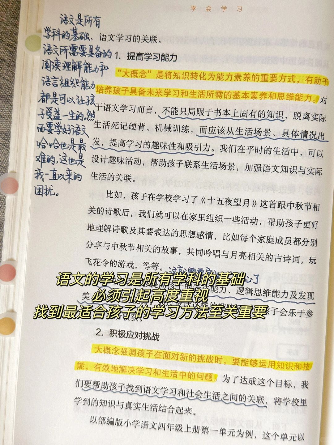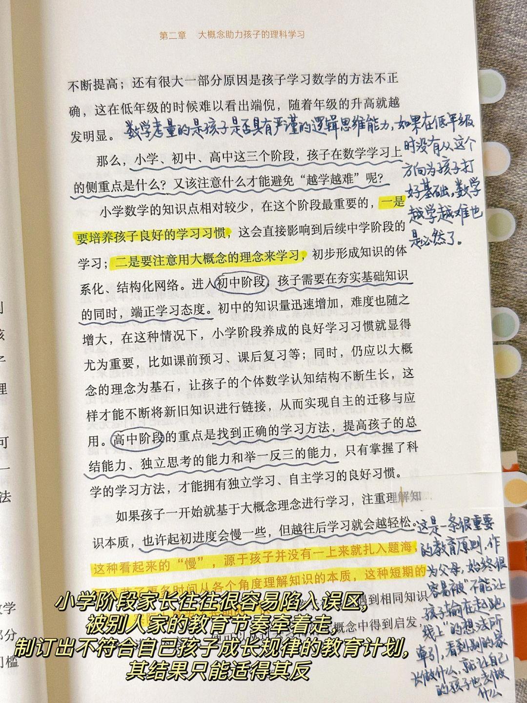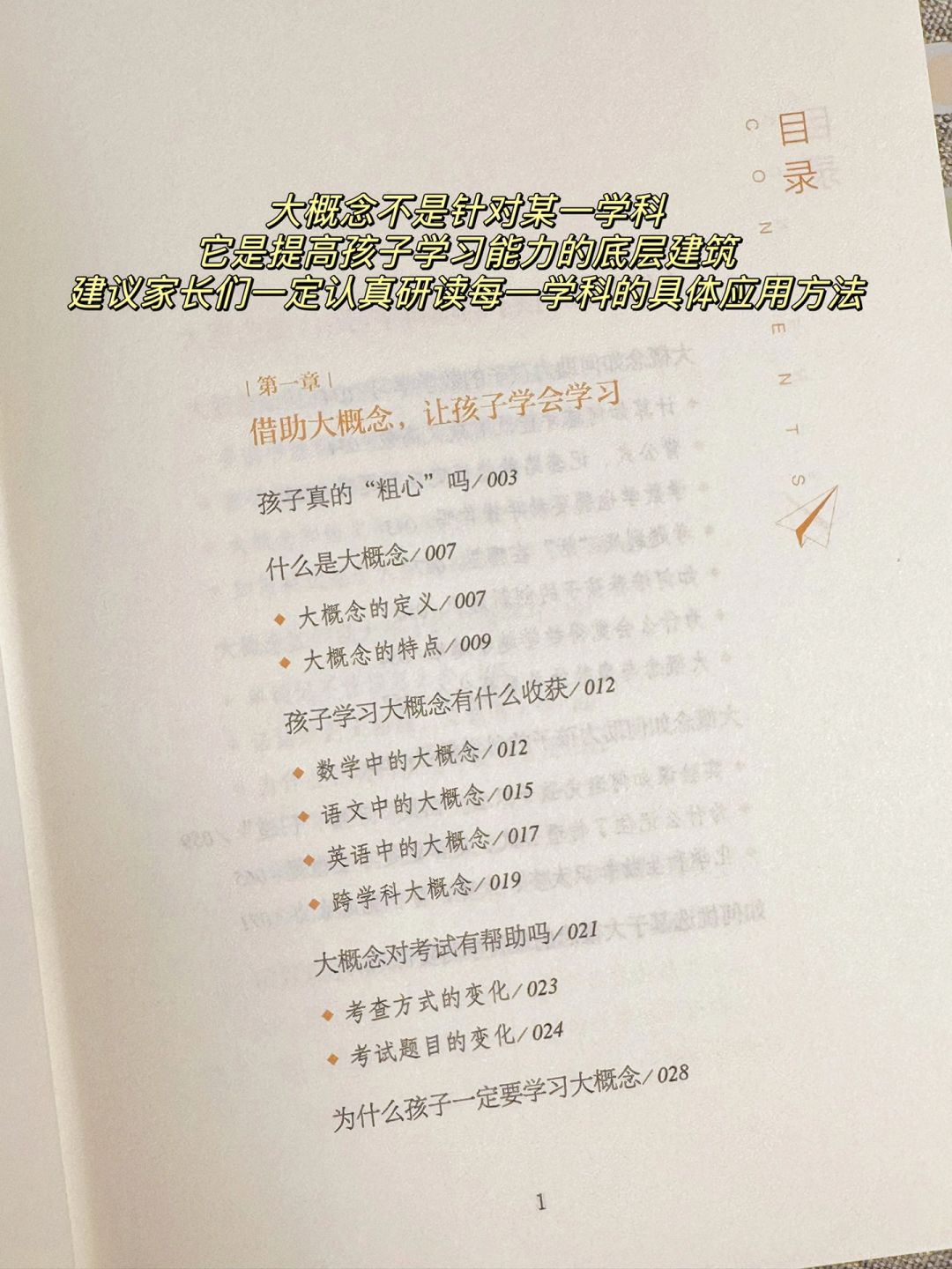 “授人以鱼,不如授人以渔”。这本书让我蕞满意的地方就是他们提出的“大概念学习法”。通过理解每个学科底层概念,能帮助孩子构建横贯学科的知识体系,培养能带出学校的学习能力。除此之外,书中对于诸多孩子学习上的问题也给出了可操作性强的解决方法,让我如获至宝‼️