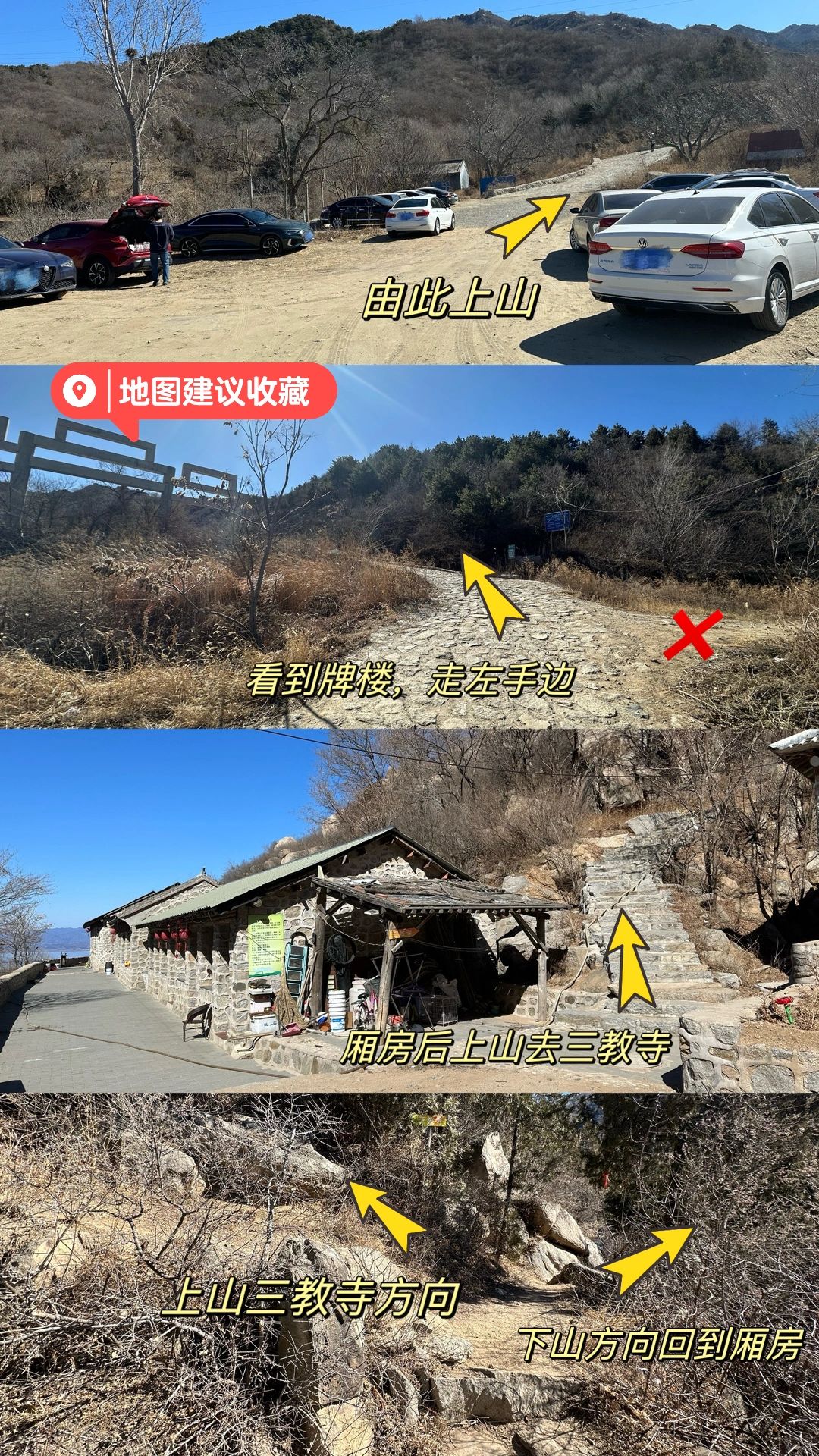 🗺️路线:停车场一直走➡️看到牌楼走左边大路➡️大概20分钟可以看到一排厢房,这里可以看水库,但不是蕞佳视角➡️厢房后有台阶继续上山➡️遇到岔路口往左是三教寺方向➡️到了三教寺可以参观,这也是看“海”的蕞佳视角,屋后有玻璃栈道和桌椅可以休息看景➡️原路返回岔路口向右➡️下山回到厢房▶️回到停车场