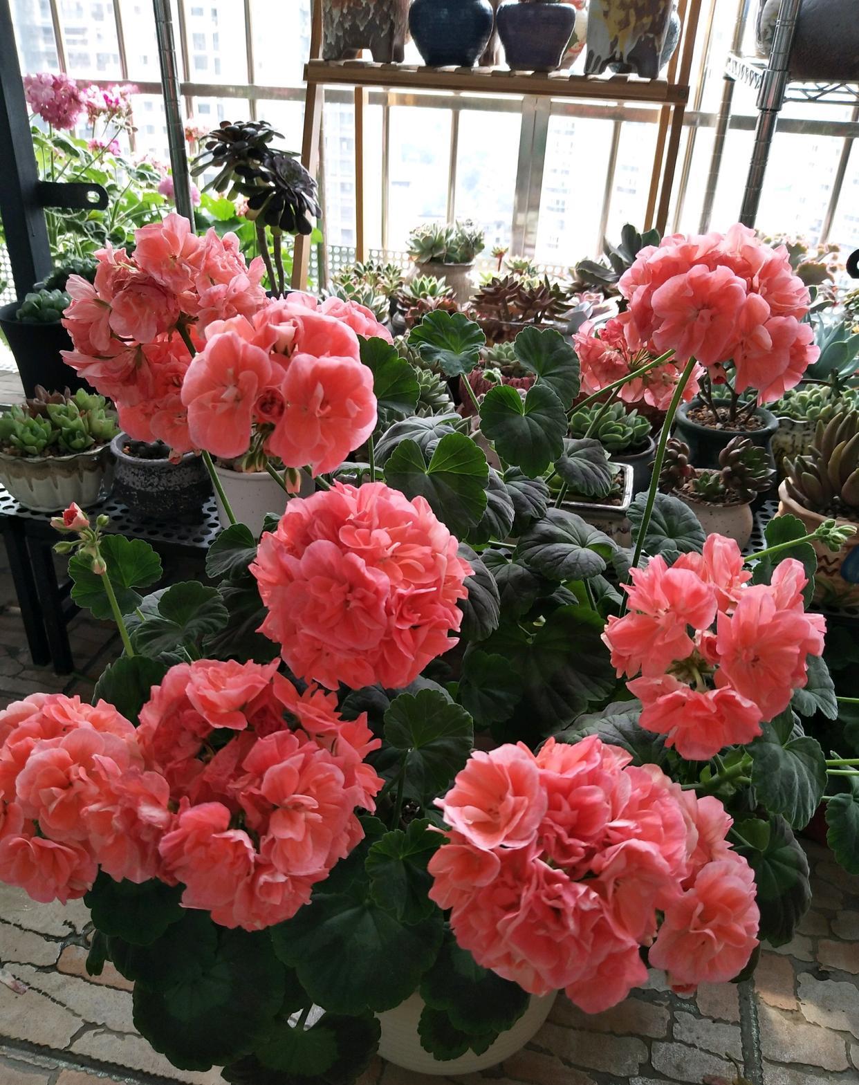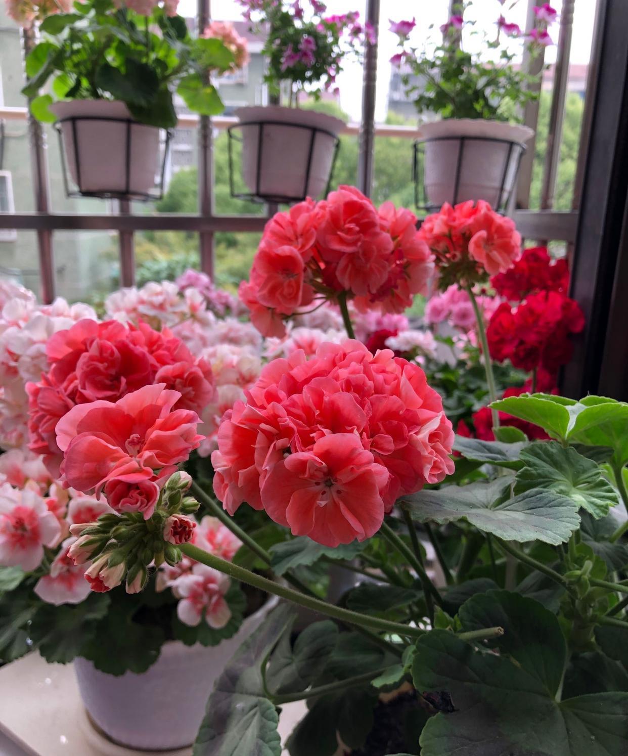 春季适合养天竺葵,给大家推荐一个优秀品种——比弗利公园,简称公园,被认为是大山宫的“升级版”,植株低矮小巧,高只有三十厘米左右,分枝性,株型紧凑,花型易成球,花色鲜艳迷人,观赏价值很高,一年四季都能开花,只要放在有阳光的地方,遵循“见干见湿”的浇水原则,就会长得很好,好养易打理,又美又好养,是不可多得的盆栽观赏佳物,家里阳台还有位置的花友可以试试。