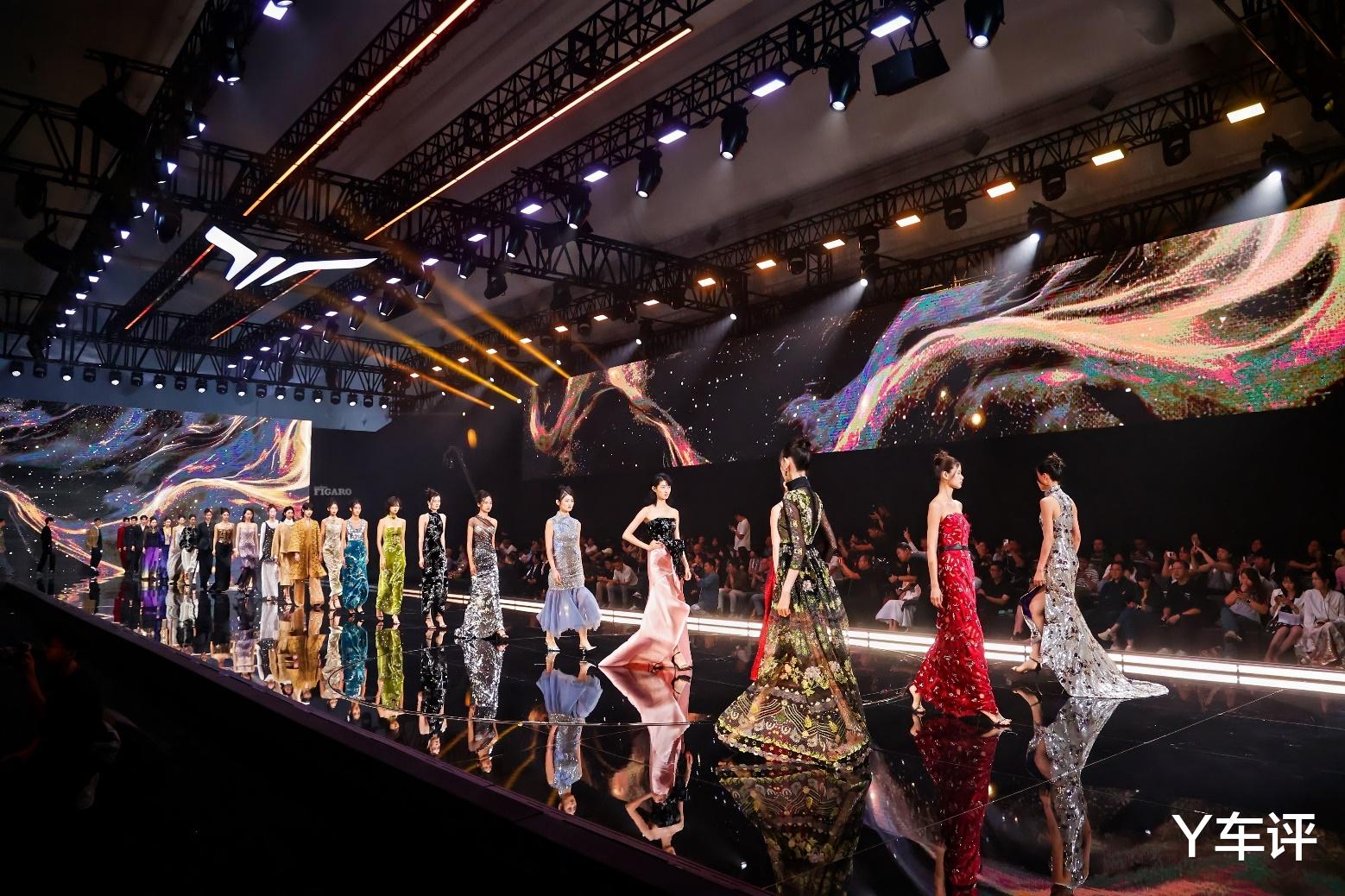 “扶摇直上,阔境天下”,岚图梦想家与岚图追光L在马尾绣与马面裙的时尚演绎中惊艳登场。非遗马尾绣传承人与当代设计师联袂,将岚图LOGO织入衣襟,呈现均衡却不对称的东方美学,传递“天人合一”的东方智慧。马面裙自古为骑行而生,如今在国际秀场焕新演绎,其祥瑞寓意代表着交通工具的跃迁与文明的传承。服装廓形宽展而从容,如鹏鸟展翅,象征MPV车型的大气格局与轿车产品的行云流水,这是对当代精英阶层生活方式的深度解读——在开阔中见细致,于从容中显不凡,岚图以东方美学原创设计正走向世界舞台并引领世界时尚。