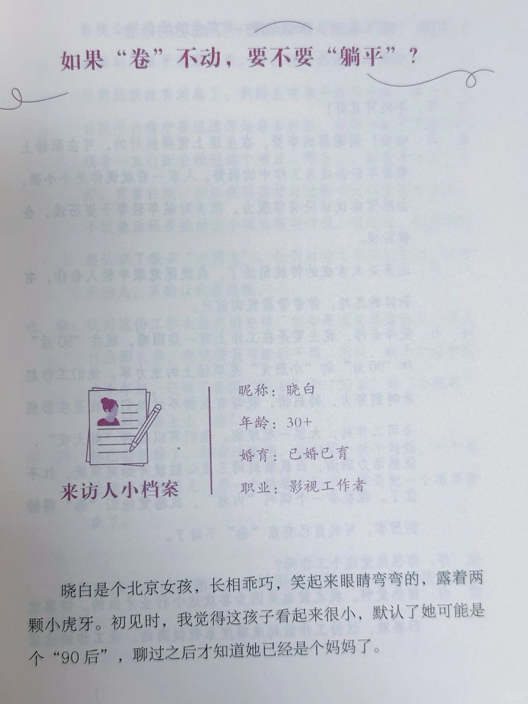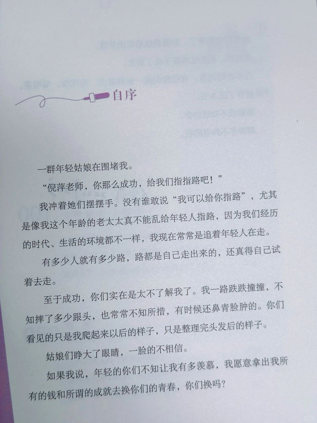 🔖这本书是倪萍老师继《姥姥语录》之后的又一暖心治愈力作。她和16位不同年龄段、不同行业中的女性相聚在一起,围绕着梦想、成长、爱情、婚姻、工作、教育、生育等话题进行了深度的探讨和交流,撷取她们生活中最典型、最困惑的问题,聊聊女性面临的困境与出路。