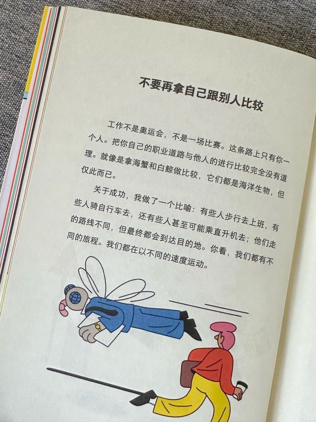 工作不是奥运会,不是一场比赛。这条路上只有你一个人。把你自己的职业道路与他人的进行比较完全没有道理。