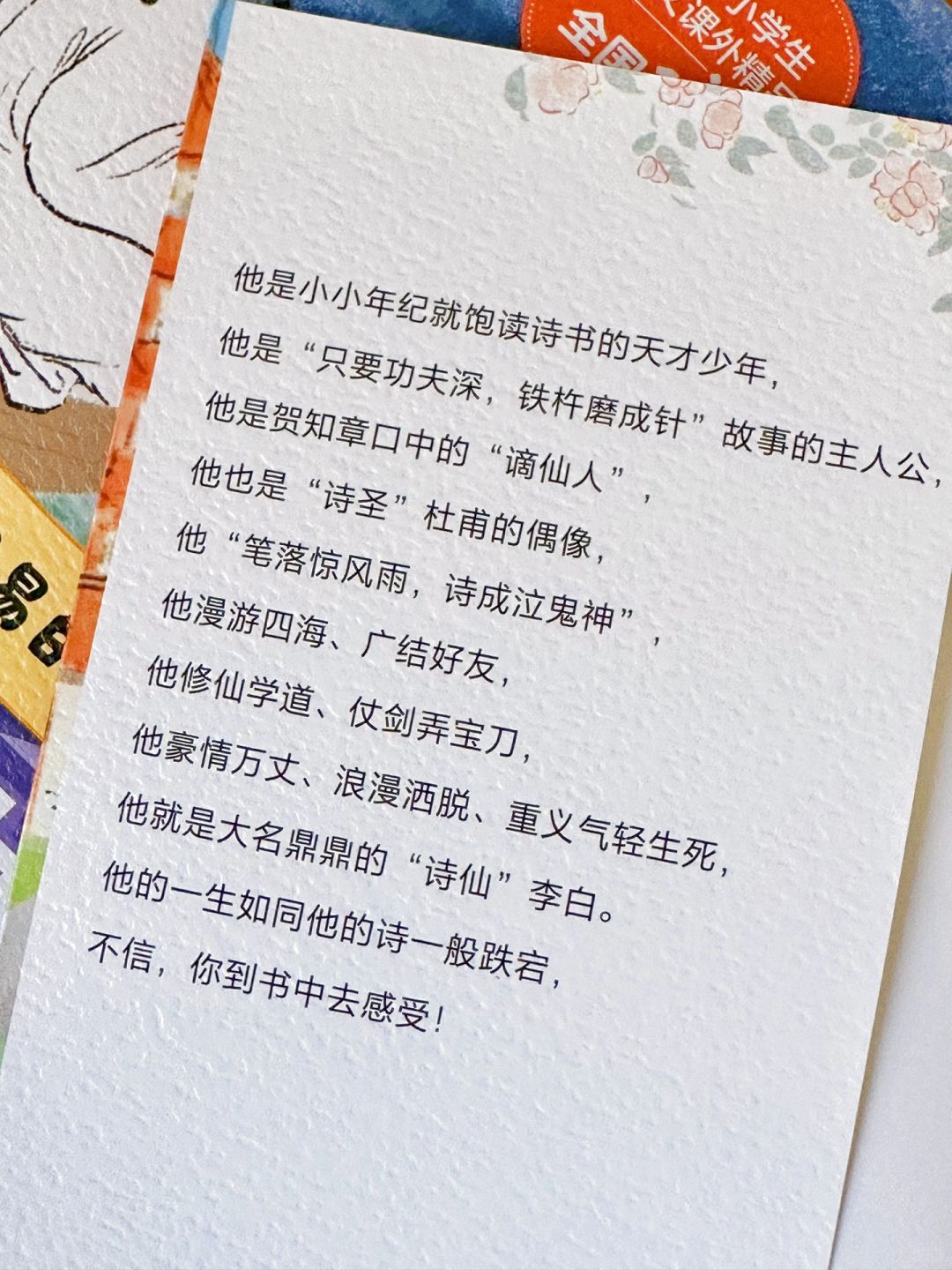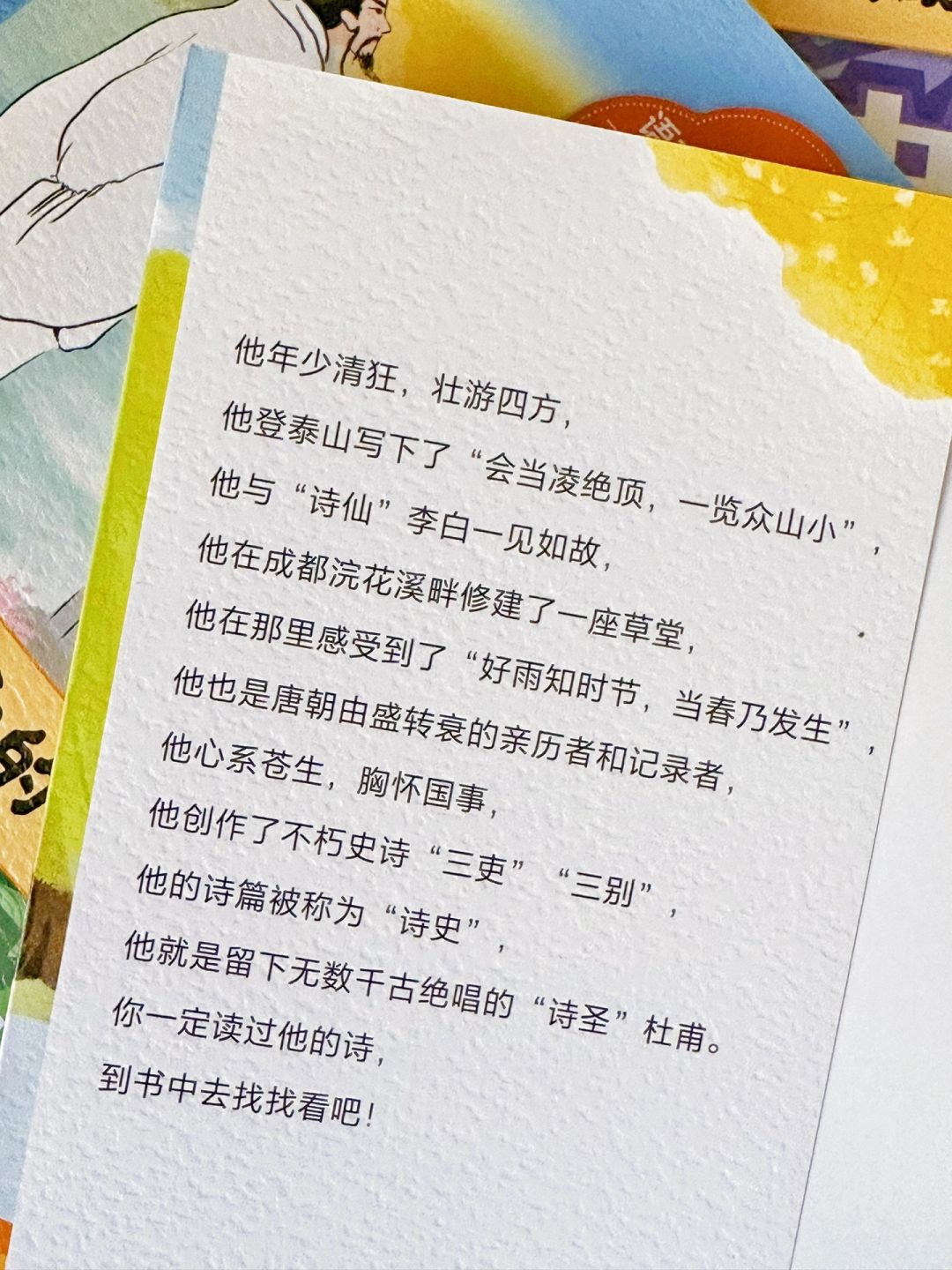 “妈妈,你知道吗?原来李白是因为没钱了才想家,才会写下《静夜思》;语文书上那个满脸愁容的杜甫,年少时竟然健壮得像“牛犊”一样!”