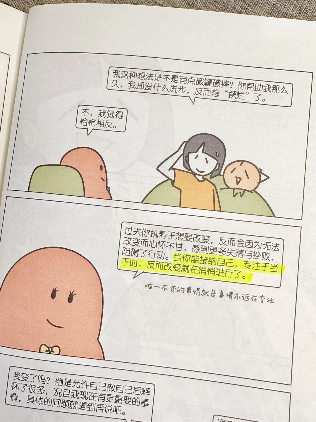 🔖33篇心理咨询漫画,5大主题,这本书以来访者、“问题生”的角度,从低自尊、社交边界、内耗、咨访关系等多个方面提出困惑,并获得来自心理学的专业解答。在毛毛毛与粉红色咨询师的30余次咨询过程中,我们都是毛毛毛的朋友,跟着她一起回溯问题的根源,探寻真正的自己,打破成见,学会正视和接纳自我情绪,从而真正卸下多余的负担,找到属于自己的自洽人生,满怀希望地生活。