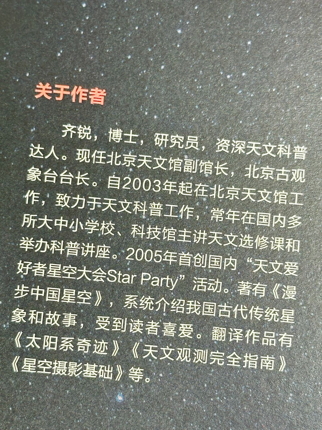 🪄本书作者齐锐老师,毕业于清华大学,是人工智能专业的博士,他热爱天文,热爱星空,期望通过文字助力恢复中国人对传统星象的认识、看法和命名。