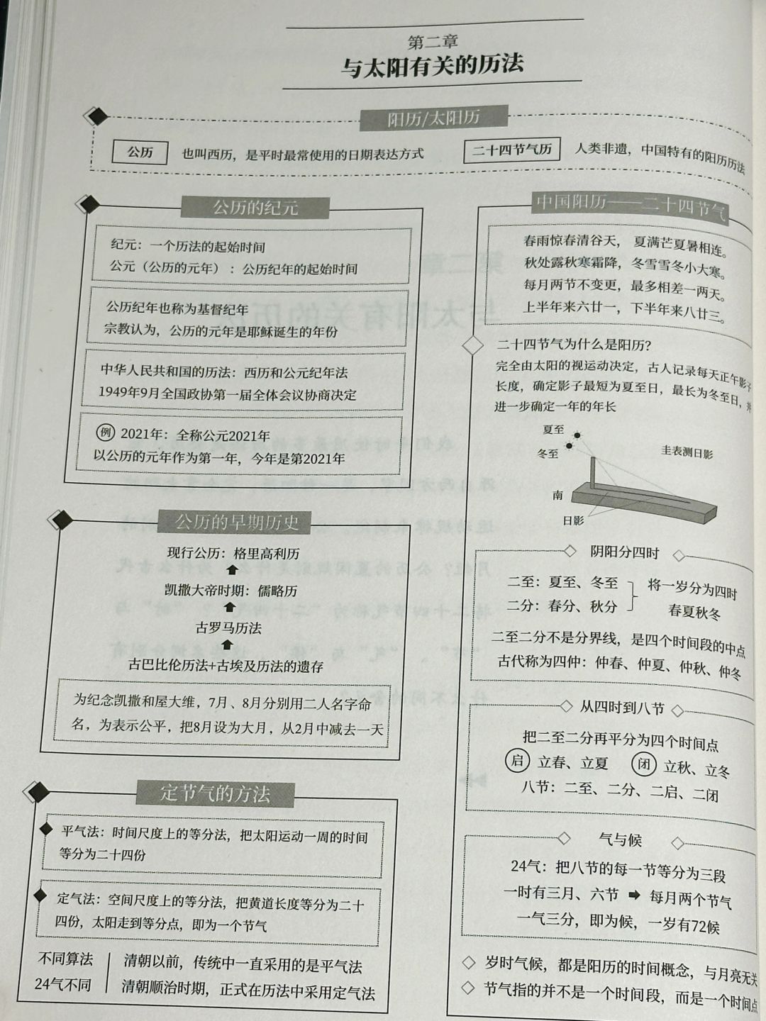 ②定气法:空间尺度上的等分法,把黄道长度等分为24份,太阳走到等分点,即为一个节气。
