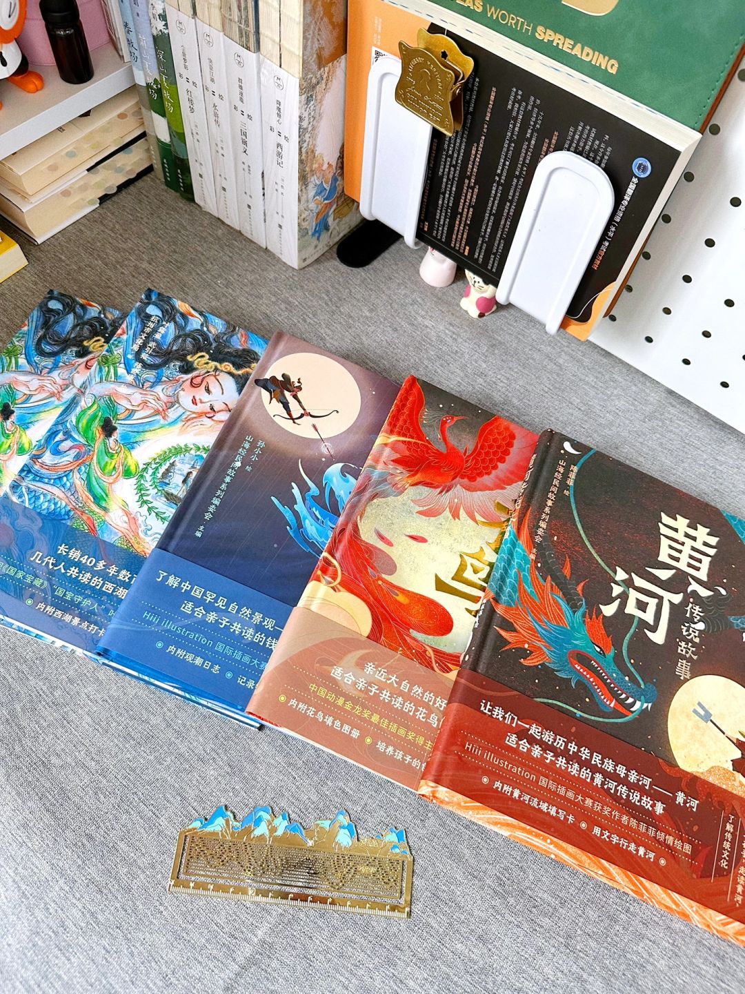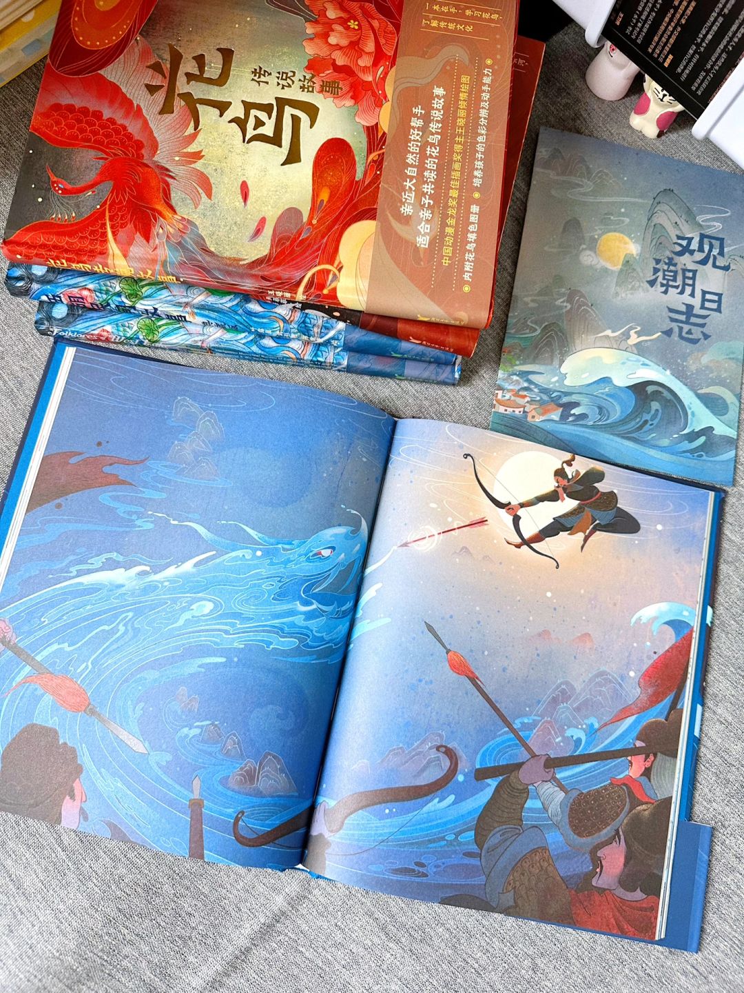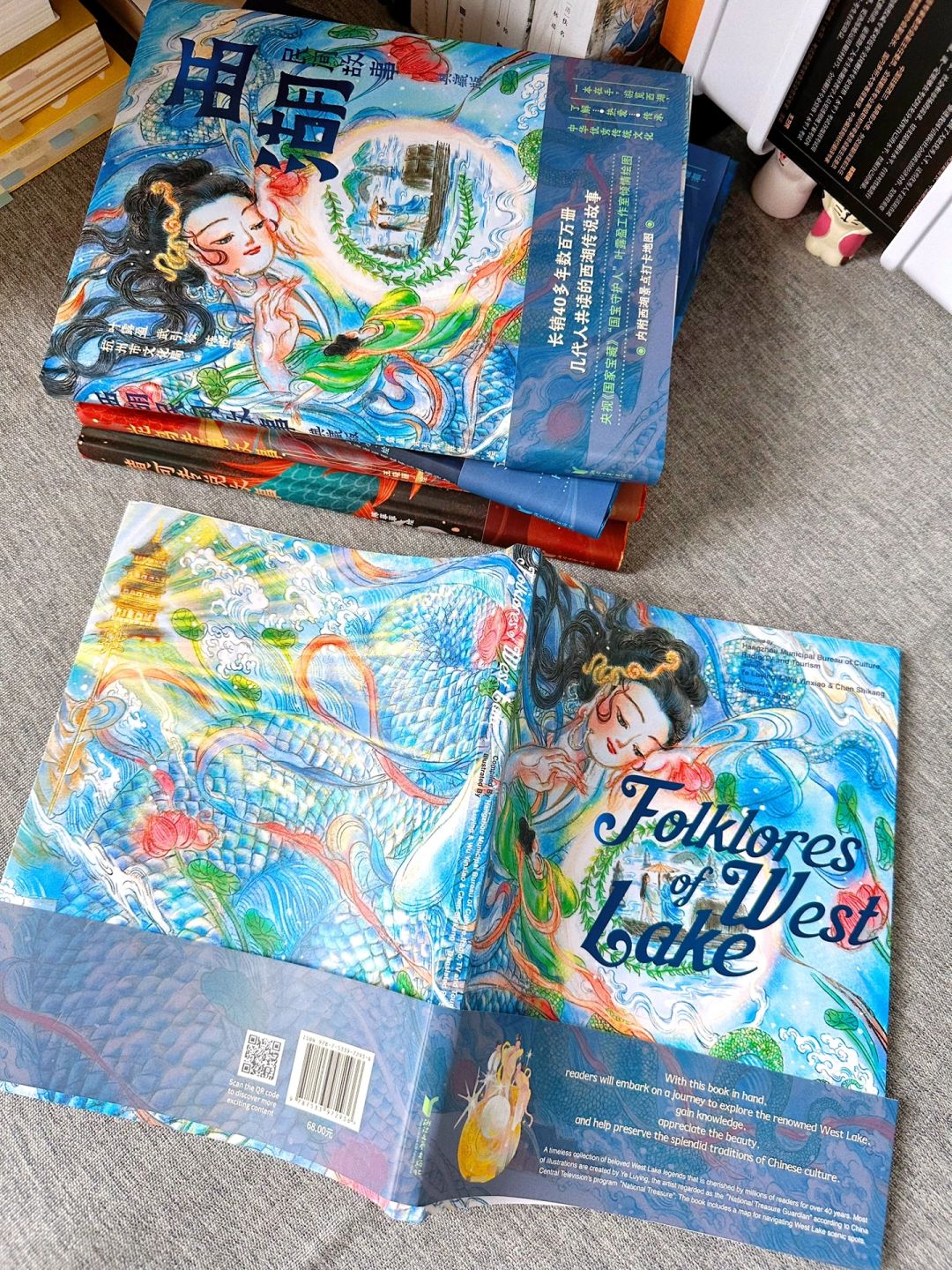 🔖这4本书包括由山海经民间故事系列编委会主编的“山海经民间故事系列”绘本3本,以及由杭州市文化局主编、央视《国家宝藏》“国宝守护人”叶露盈工作室绘制的《西湖民间故事》1本,其中《西湖民间故事》还是中英文双册。全套书画风精美、装帧大气,高级感满满。