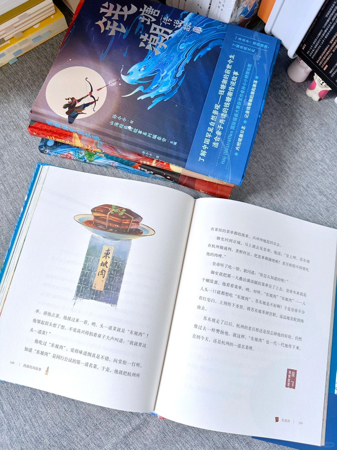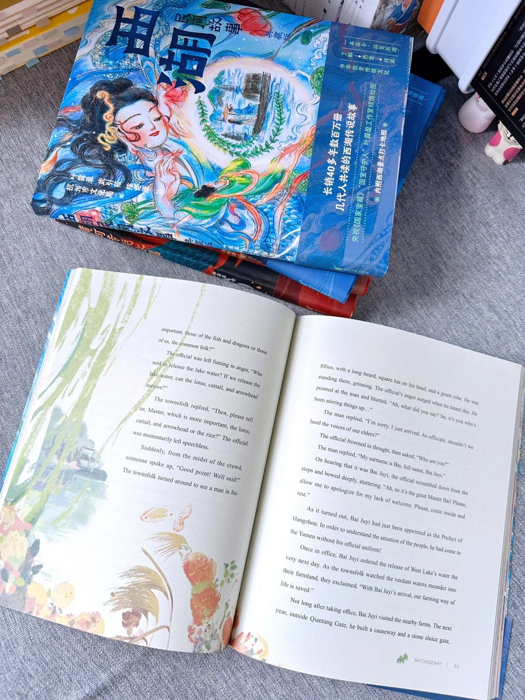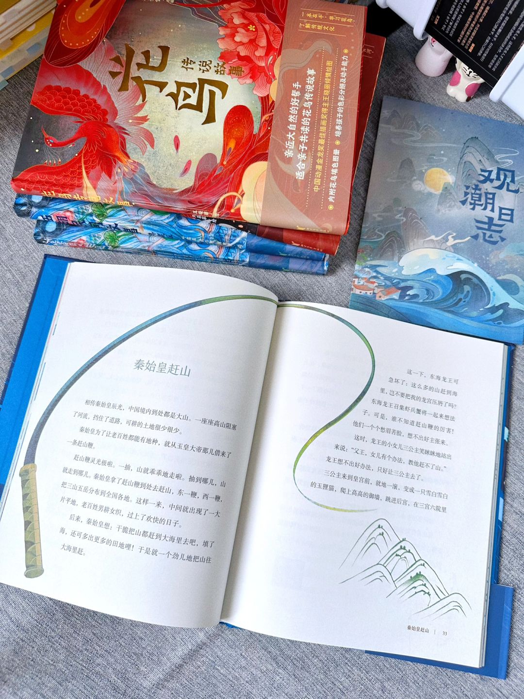 🔖这4本书包括由山海经民间故事系列编委会主编的“山海经民间故事系列”绘本3本,以及由杭州市文化局主编、央视《国家宝藏》“国宝守护人”叶露盈工作室绘制的《西湖民间故事》1本,其中《西湖民间故事》还是中英文双册。全套书画风精美、装帧大气,高级感满满。