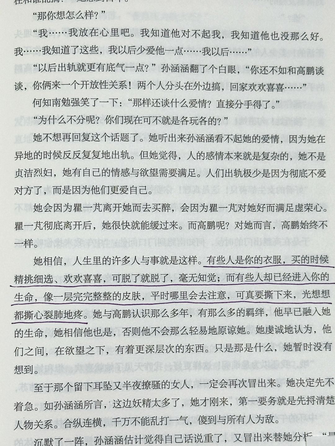 🔵“有些人是你的衣服,买的时候精挑细选、欢欢喜喜,可脱了就脱了,毫无知觉;而有些人却已经进入你的生命,像一层完完整整的皮肤,平时哪里会注意,可真要撕下来,光想想都撕心裂肺地疼。”