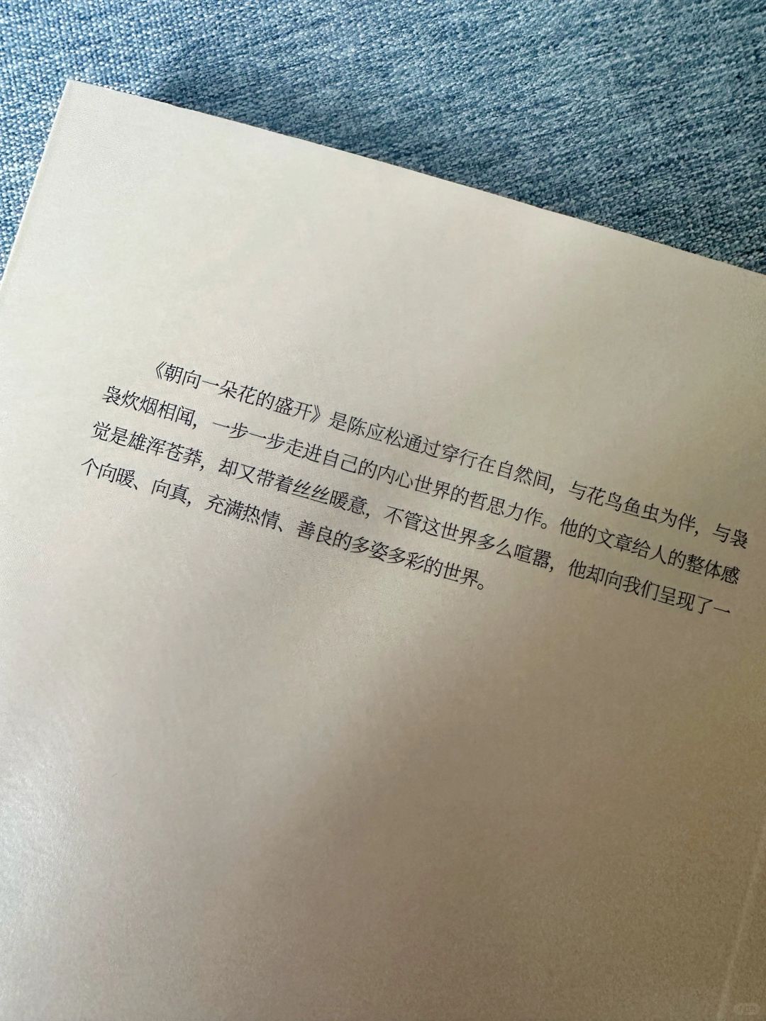 这是陈应松通过穿行在自然间,与花鸟鱼虫为伴,与袅袅炊烟相闻,一步一步走进自己的内心世界的哲思力作。他的文章给人的整体感觉是雄浑苍莽,却又带着丝丝暖意,不管这世界多么喧嚣,我们都能从中体验到一个向暖、向真、向善的安静的世界。