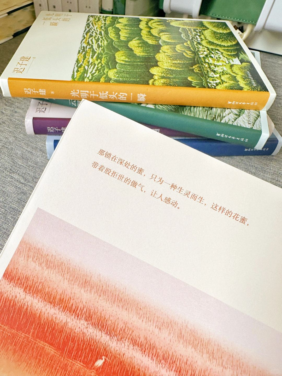 🔖这套散文集有5本,每一本都让我读得忘记了自己,沉迷其中无法自拔。也许是造物主格外垂怜她手中的那支笔吧!否则怎么会从笔下流淌出那么多直抵人心的词句!