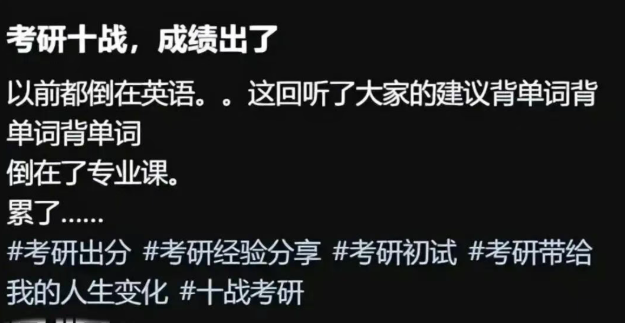 她还说之前成绩不理想,主要是英语拖后腿。后来她听了大家的建议,开始背英语单词,结果呢,可能是时间和精力有限,又折在了专业课上。