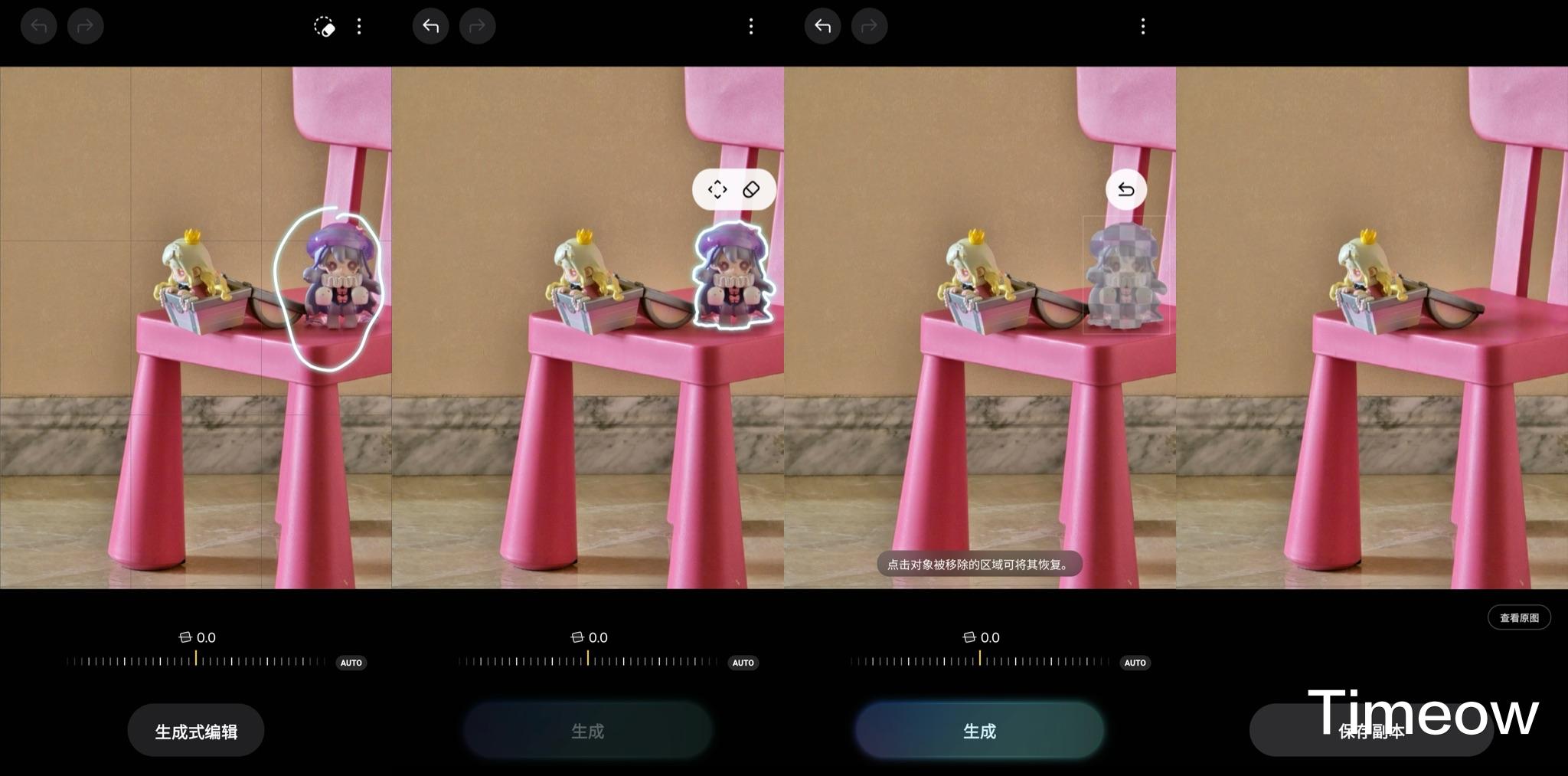 比如用生成式编辑功能,来智能移除不需要的画面元素,比如意外闯入的路人,或者影响观感的杂物AI会智能地填充物体原先位置的背景,让画面看起来自然协调,几乎不留修改痕迹。