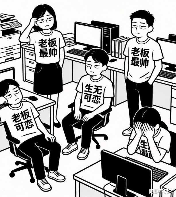 这事说起来,能把人尬出三室一厅。我们老板,人到中年,发福的肚子能顶个篮球,最大的爱好就是搞个人崇拜。上周他去参加了个什么 “企业家领导力培训”,回来就跟打了鸡血似的,一拍桌子宣布:“为了弘扬企业文化,增强团队凝聚力,我定制了一批文化衫,全员必须穿!”第二天,文化衫一到手,全公司都沉默了。荧光绿的底色,胸前印着四个加粗的烫金大字 ——老板最帅,旁边还配了一张老板 45 度角仰望天空的油腻大头贴,后背更绝,印着 “跟着王总混,三天饿九顿”(划掉),是 “跟着王总干,钞票千千万”。同事们拿着文化衫,脸都绿了。设计部小张当场吐槽:“这颜色,晚上出门都不用开反光条,直接能当信号灯!”财务部大姐翻着白眼:“我活了四十岁,没穿过这么丢人的衣服!”可老板的命令谁敢违抗?不穿的话,当月绩效扣 20%,还要罚扫一周厕所。没办法,大家只能捏着鼻子穿上。那天早上,办公室跟盘丝洞似的,一片绿油油,每个人脸上都写着 “生无可恋”。老板穿着同款,在办公室晃悠,看到谁都要问一句:“怎么样?帅不帅?”我们只能挤出比哭还难看的笑容:“帅!王总最帅!”我看着身上的荧光绿,想死的心都有了 —— 因为我当天下午要去见张总,那可是我们公司的大客户,每年给我们投上百万的广告,合作三年,我在他面前一直都是干练专业的形象。我赶紧去找老板请假:“王总,我下午要见张总,能不能破例一次,不穿这个?”老板眼睛一瞪:“不行!这是企业文化!你穿着去,让张总看看我们公司的凝聚力!说不定他一高兴,还能多签点单子!”我:“……”合着他是想让我穿着这件 “战袍” 去丢人现眼啊!