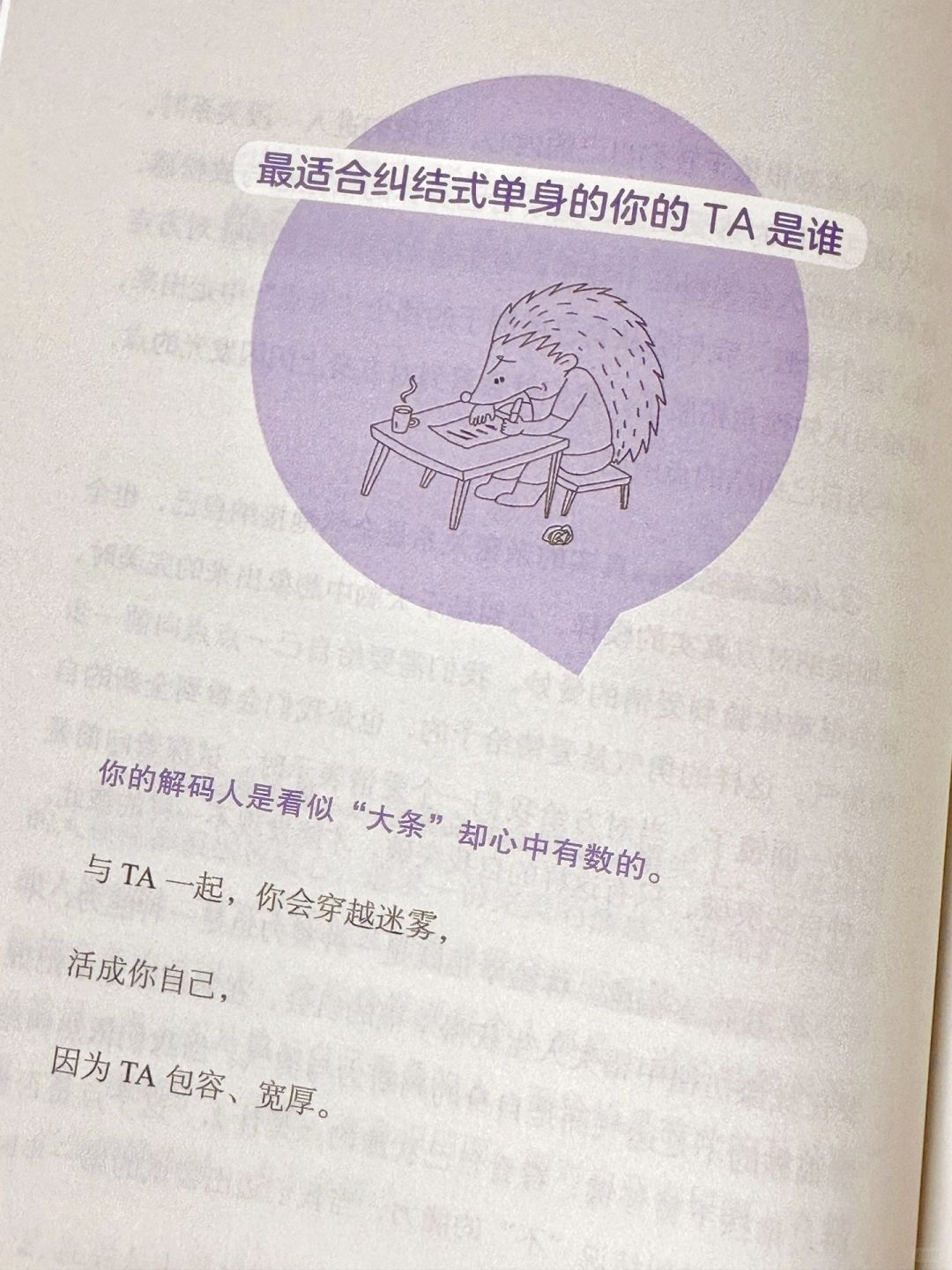 🪄和一般说教式的鸡汤文不同,这本书列举了很多实例,还为我们提供了每种单身模式的建议观看影视剧。在这些故事里,我们每个人都能看到自己爱情故事的影子,找到实用的建议,简直就是一本宝藏恋爱指南啊‼️