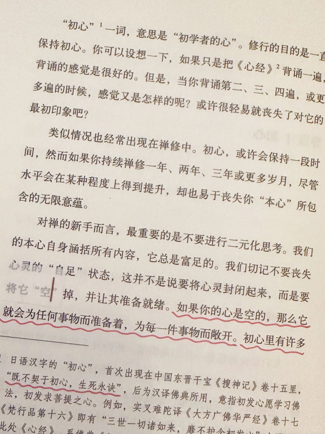 🔖这本书是铃木俊隆的美国弟子整理他坐禅时的演讲辑录,从坐禅的姿势,谈到色空观,谈到无,谈到忠于自己的初心,指导人们在生活中如何修行,鼓励我们去实现自己的真实本性和禅心。