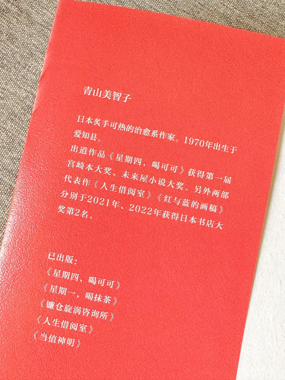 🔖从《人生借阅室》到《星期一,喝抹茶》,青山美智子已经成了我心目中不可多得的治愈系宝藏小说家。每当我感到孤独无助、焦虑难安时,都会读一读她的文字,那些看上去平平无奇的字句,仿佛被赋予了魔法一般,会带我进入到另一个世界,一个安详、宁静、空澄的美好世界。