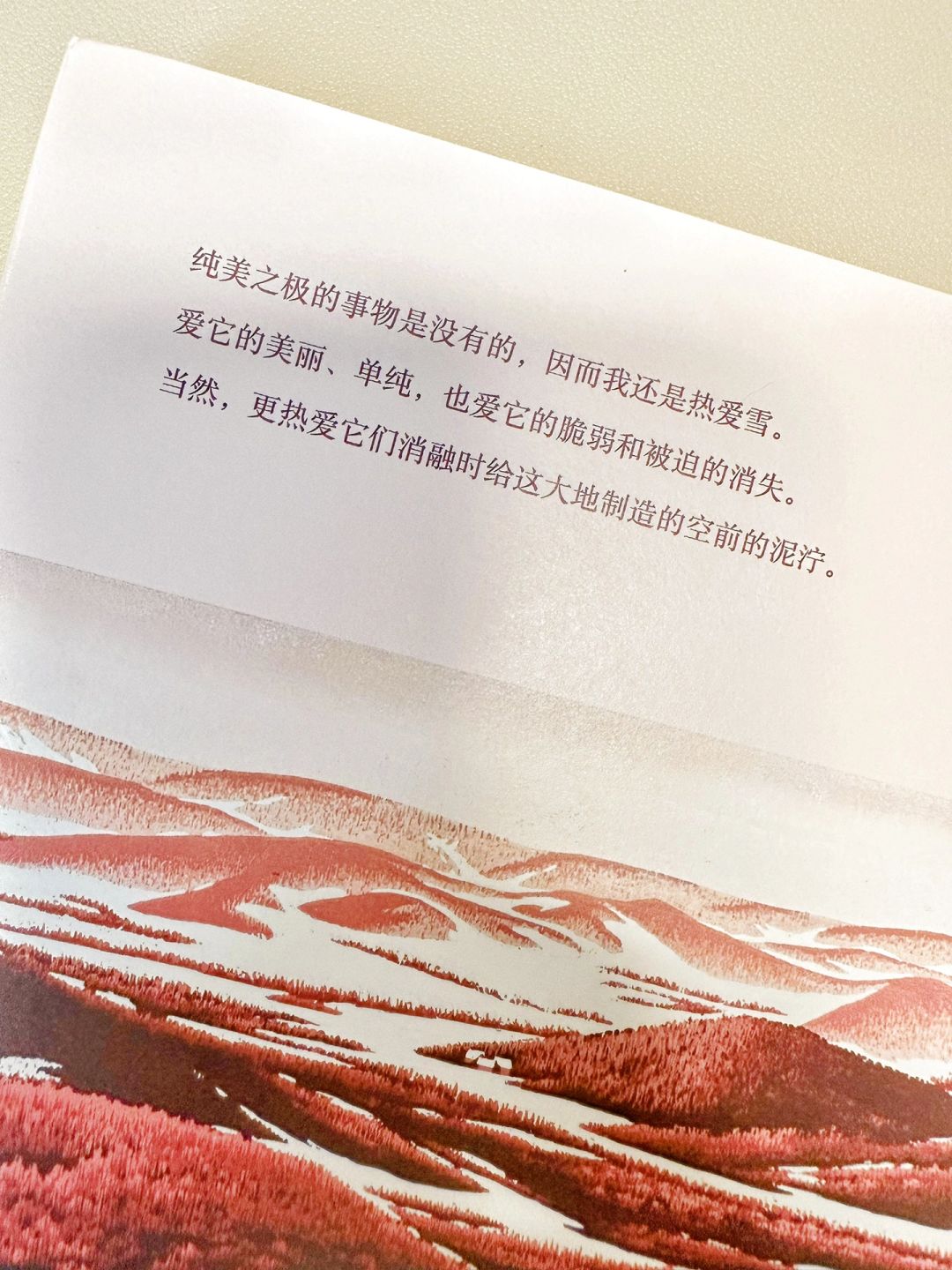 纯美之极的事物是没有的,因而我还是热爱雪。爱它的美丽、单纯,也爱它的脆弱和被迫的消失。当然,更热爱它们消融时给这大地制造的空前的泥泞。