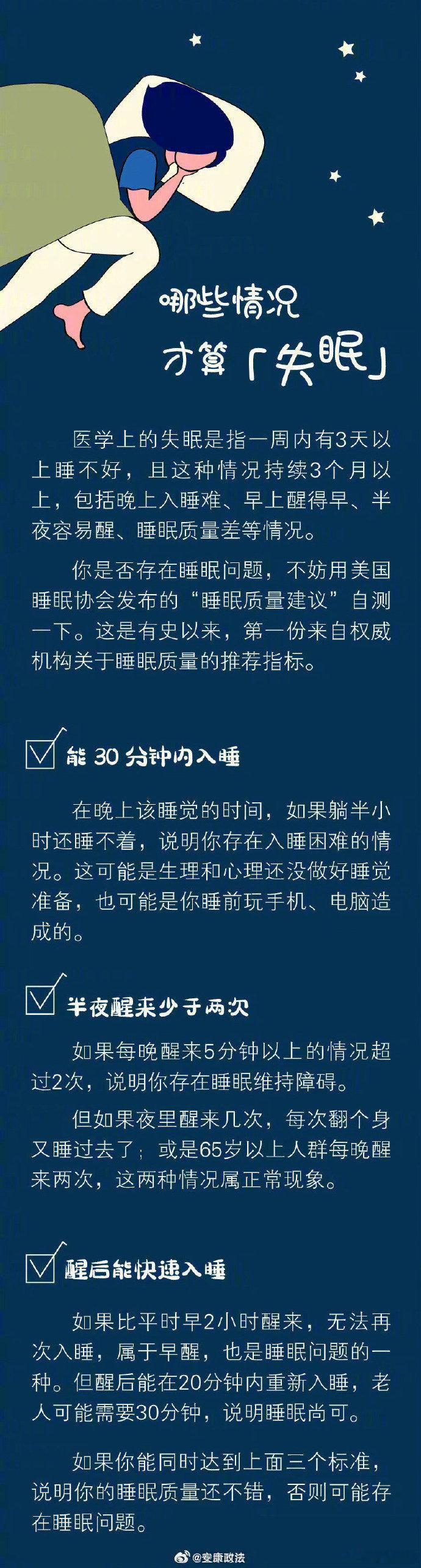 【一觉到天亮的6个方法】如果一个人一周内有3个晚上睡不好,出现入睡和维持困难、醒得早,就算是失眠了,长期失眠会让各个脏器得不到有效休息。戳↓↓