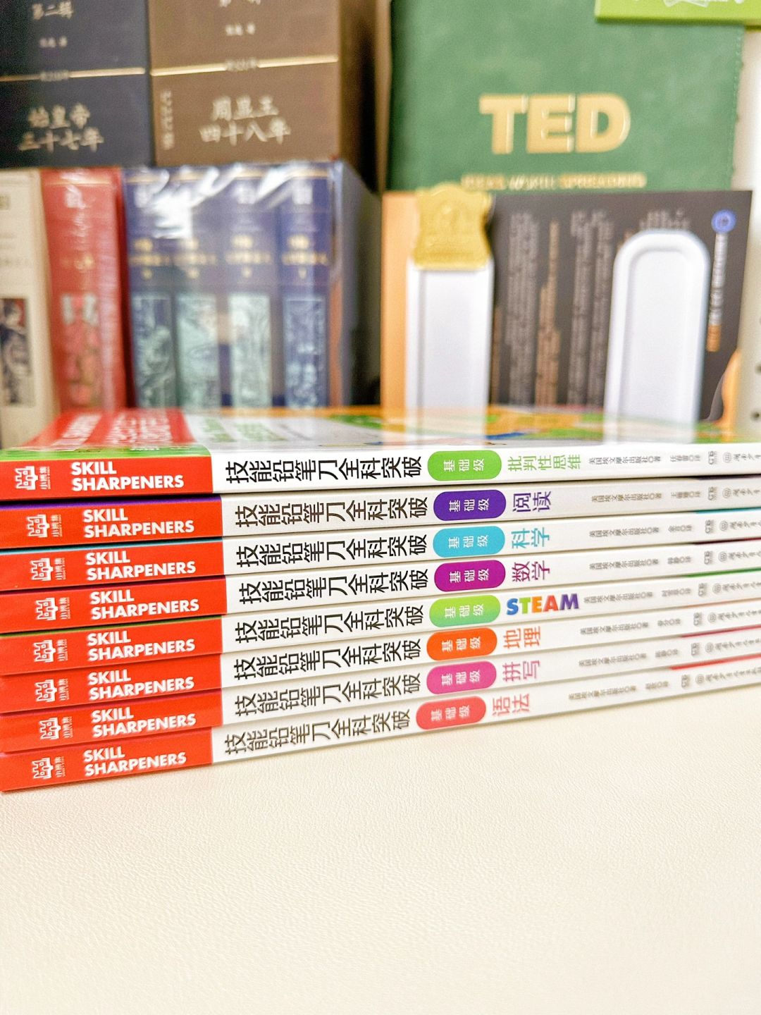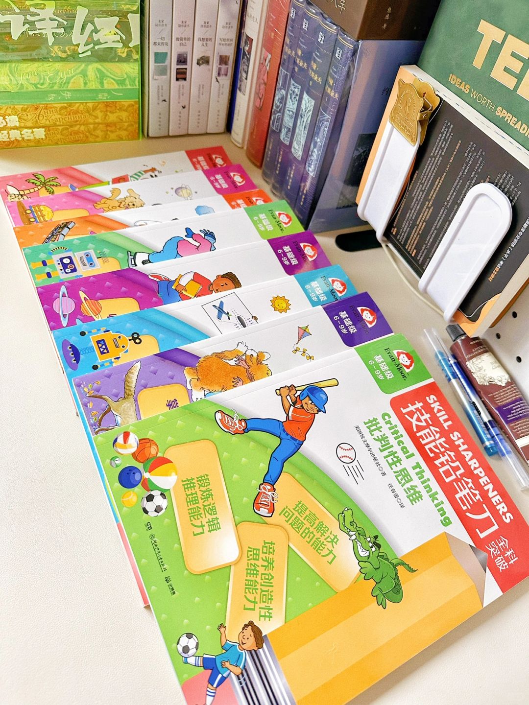 🔖全套书共8册,涵盖了批判性思维、科学、数学、STEAM、地理、拼写、语法、阅读等多个学科,旨在给孩子提供具有国际化视野的多学科启蒙。通过探究式跨学科活动,精进孩子的各学科学习技能。