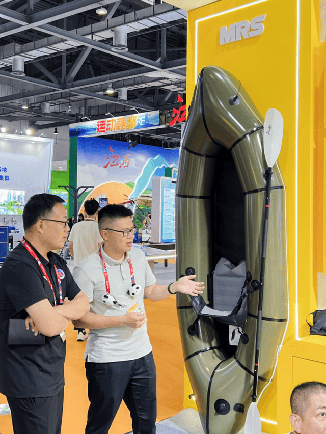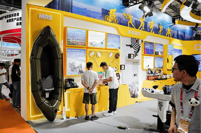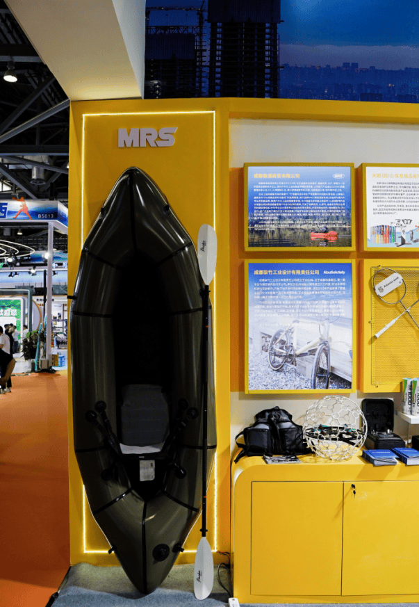 成都展馆以“赛事名城 运动成都”为主题,融合银杏黄主色调与“太阳神鸟”文化元素,吸引众多行业人士驻足。MRS凭借轻量化技术成为展区内焦点之一,其背包船系列通过便携收纳等特性,精准适配城市水域与户外探险需求,吸引现场观众咨询了解。