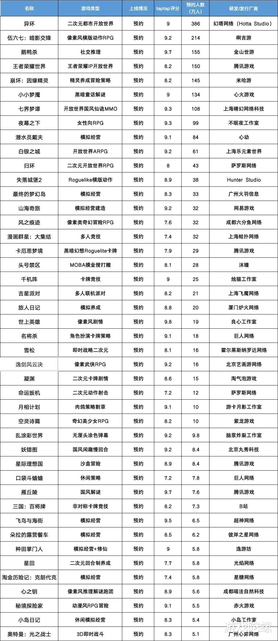 重磅新游:超40款高人气高评分手游进场,腾讯、完美、米哈游、心动火力全开