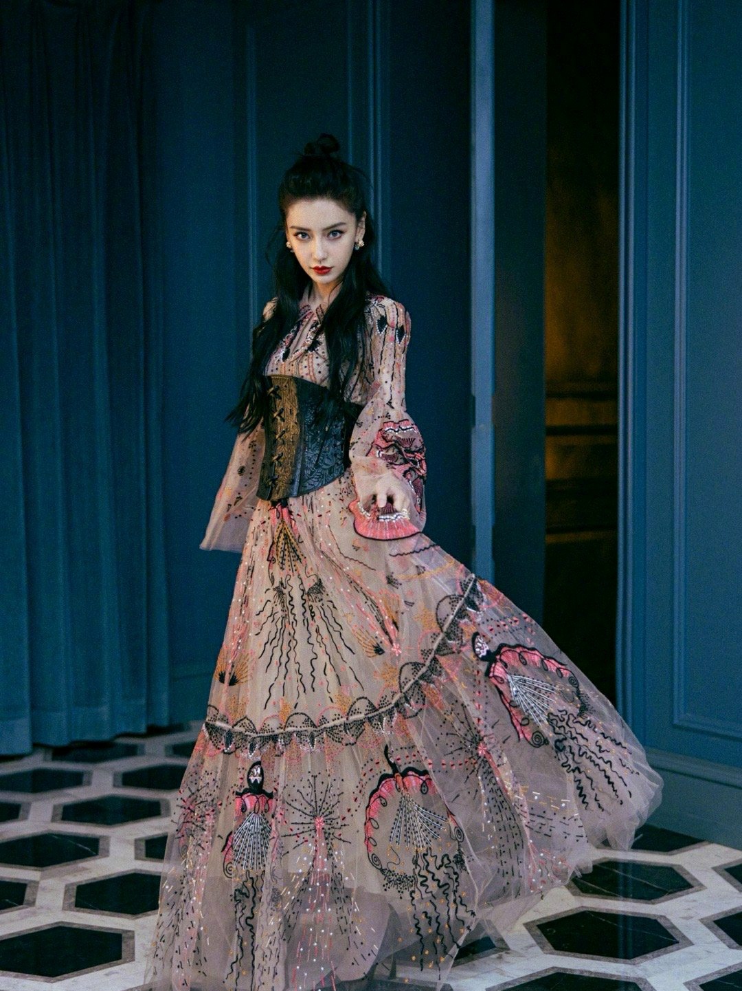 baby新造型大片创意感十足,身穿花枝束腰长裙太有气质了,复古成熟, 好有魅力,如花朵般静静绽放, 潮酷感满分,美人与鱼的相遇。一颦一簇间闪出撩人的色彩,眼尾扬起的漂亮弧度,全是万种风情。