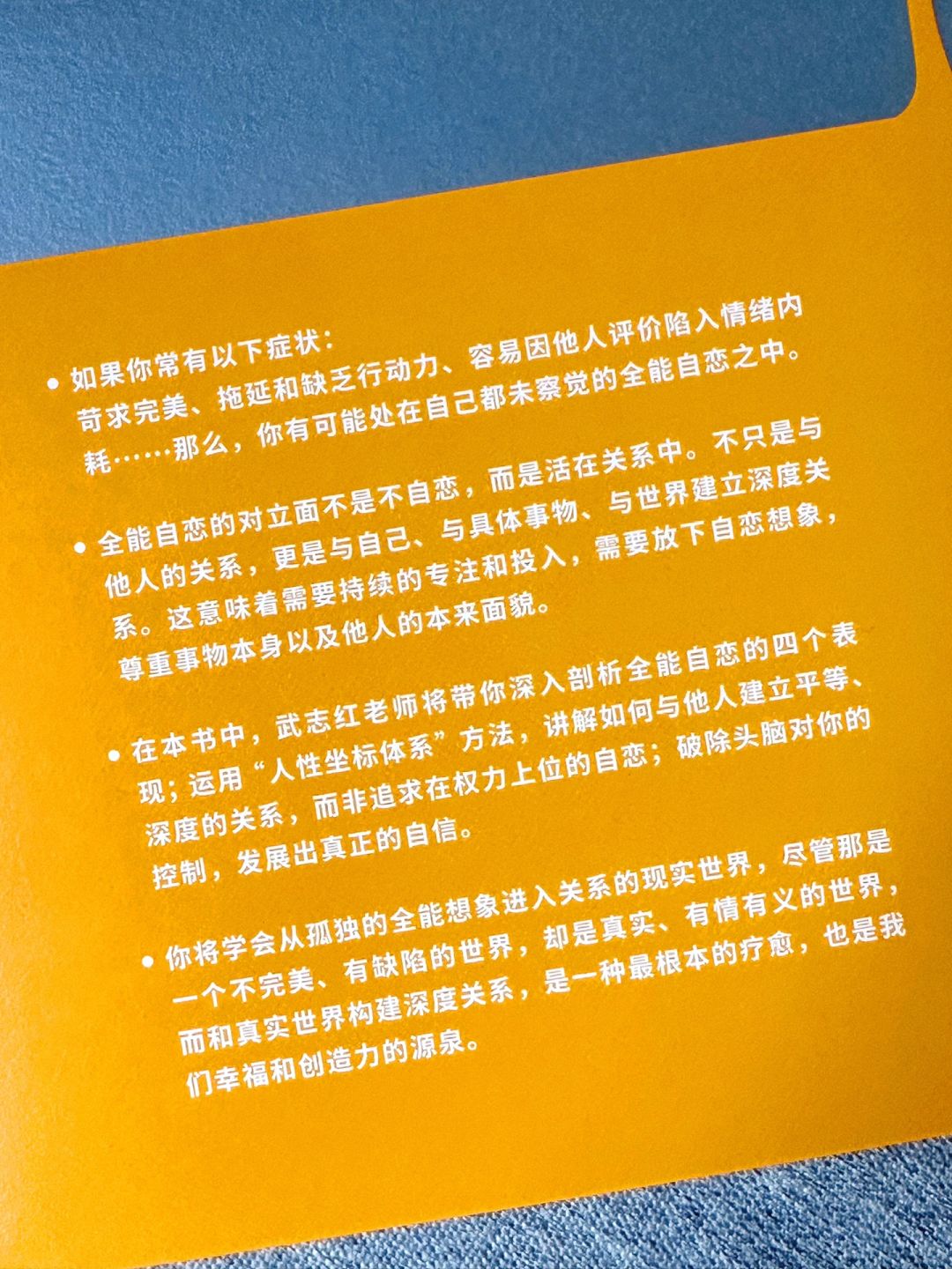 🔖在武志红老师沉淀数年后写出的这本重磅新书中,他系统剖析了“全能自恋”,以他独创的自我认知工具“人性坐标体系”为方法,引导我们重新认识自我,活出自我,也能识别和摆脱亲近的人对自己的情绪操控。