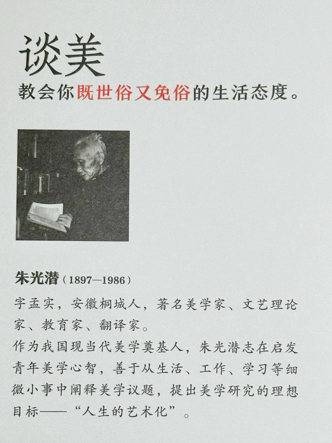 “免俗不是要你脱离世俗社会,也不是要你不食人间烟火,只要学会在生活中发现美,体会美,就能领略免俗的趣味,拥有既世俗又免俗的生活态度。”