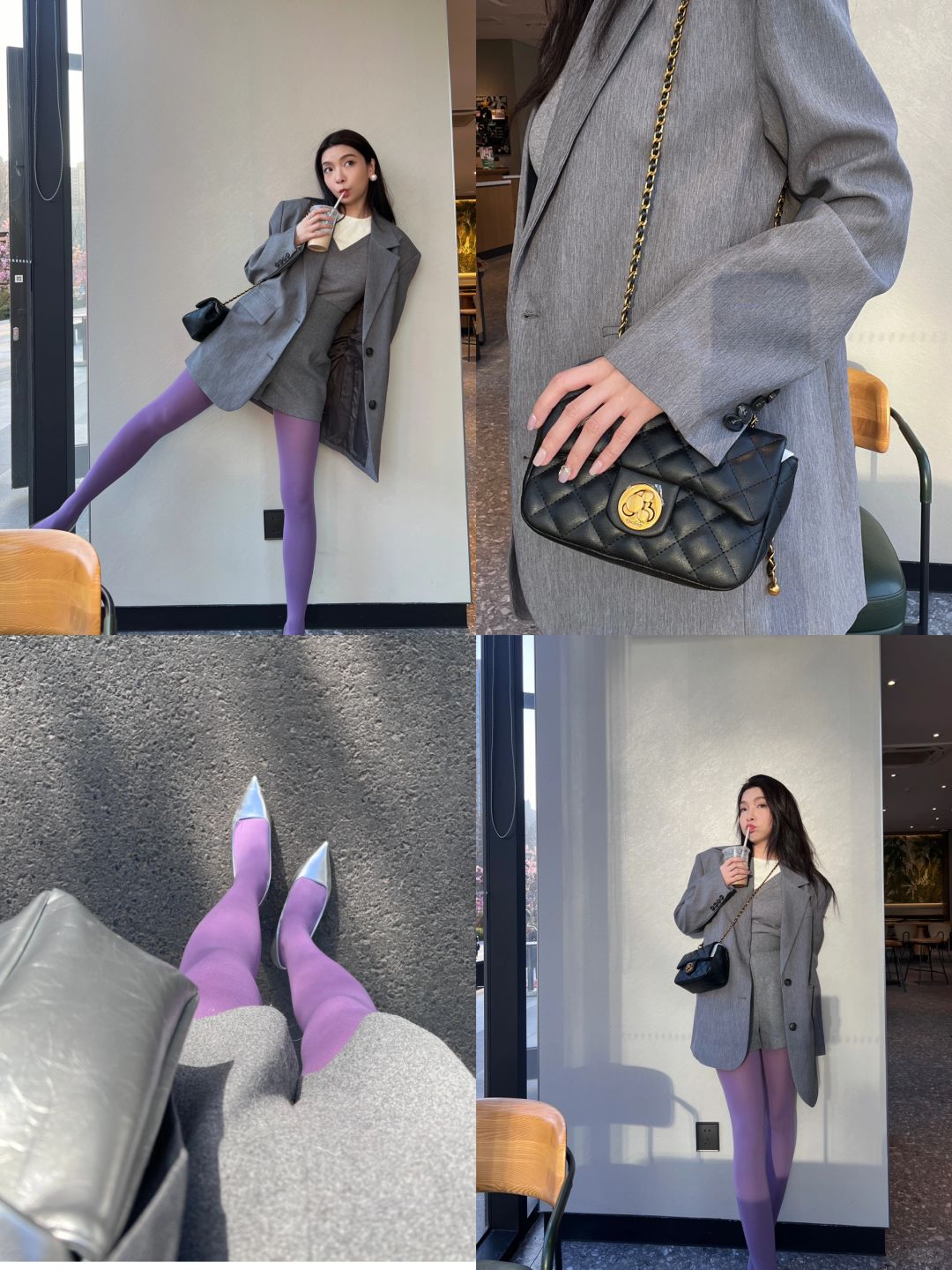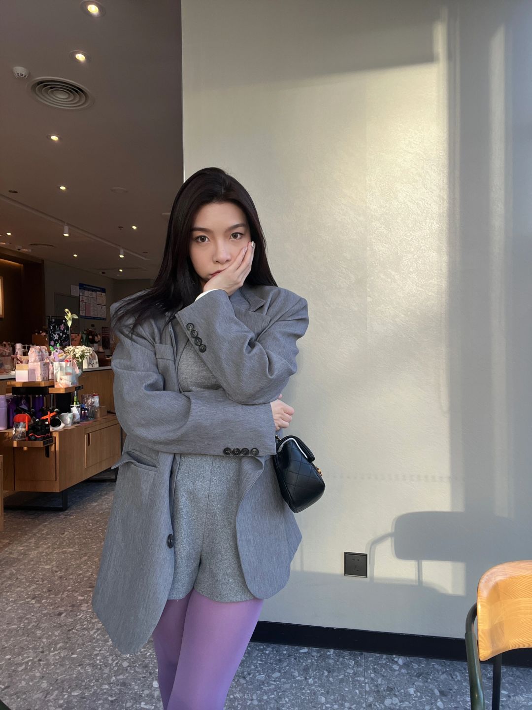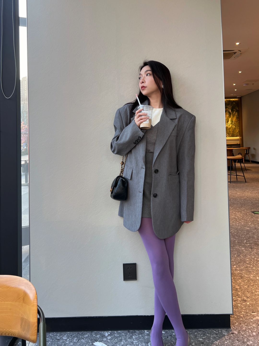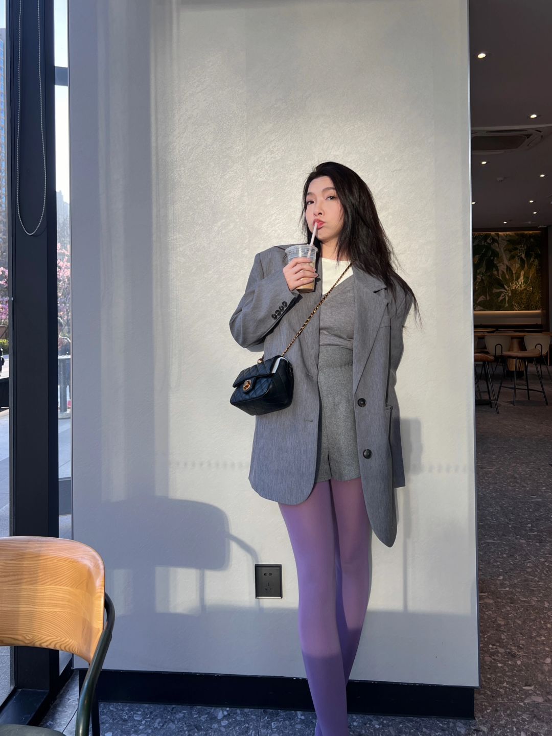 春日穿搭就是西装出街 这身ootd难得被老妈夸好看! 灰色西装搭配紫色袜子🧦 又是格雷女孩的一天,这样搭配俏皮又减龄!